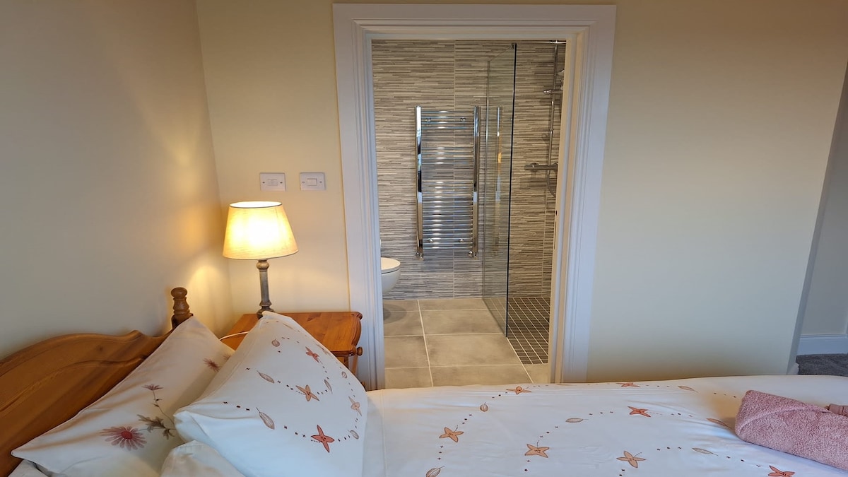 Sleeping arrangements include two double bedrooms (one ensuite) and a twin room with two single beds, ideal for families or friends sharing. The main bathroom features a convenient walk-in electric shower, and all linen and towels are provided for your stay.