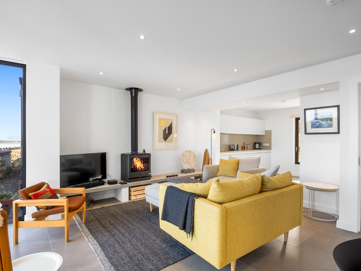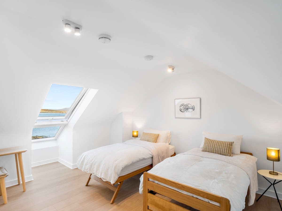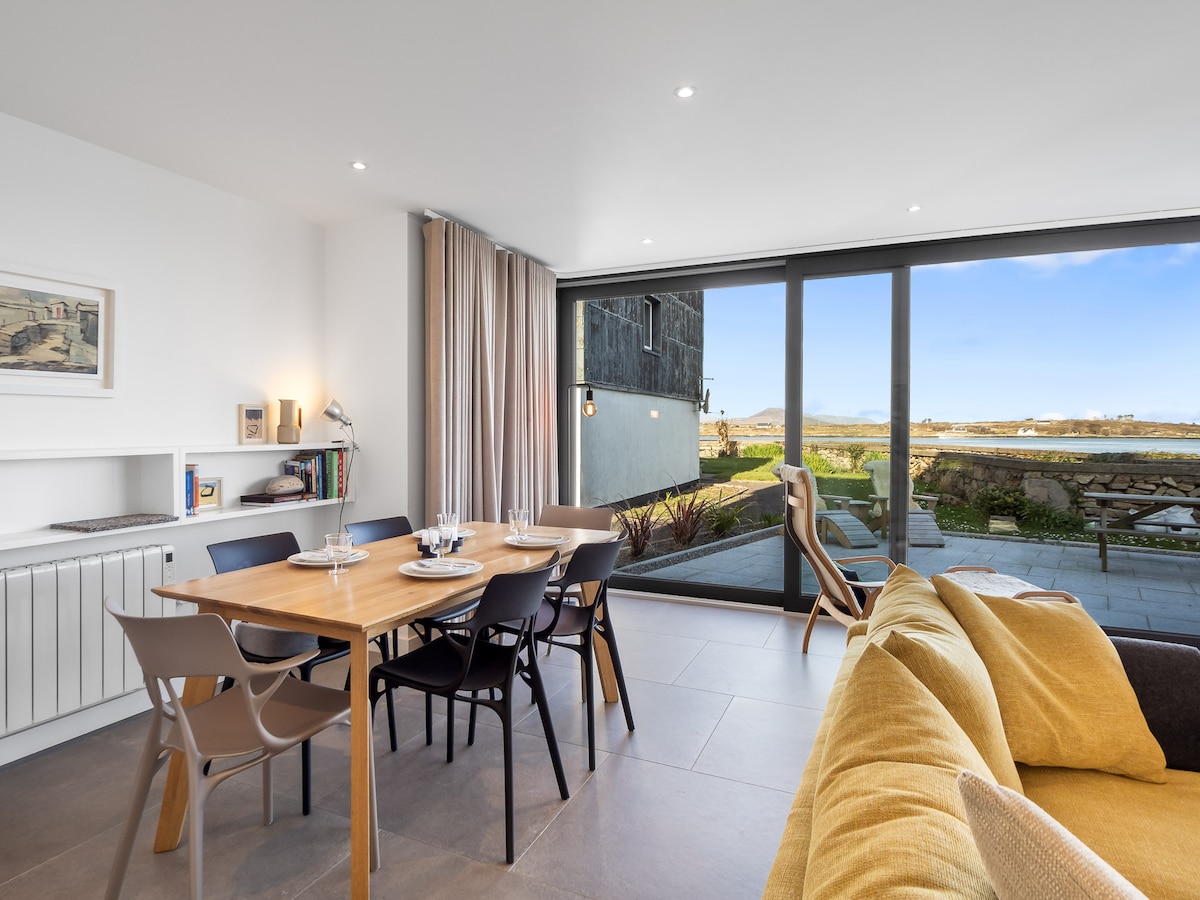 Nestled on the historic site of an old monastery, West Haven is one of a select few homes perfectly positioned beside Roundstone’s charming old harbour. Just a short stroll from the village, you’ll find an array of renowned restaurants, traditional pubs, and local shops, making this an ideal base for your Connemara getaway.One of West Haven’s most enchanting features is its proximity to the sea—fall asleep to the soothing sound of waves lapping against the shore, a true luxury for those seeking coastal tranquillity.