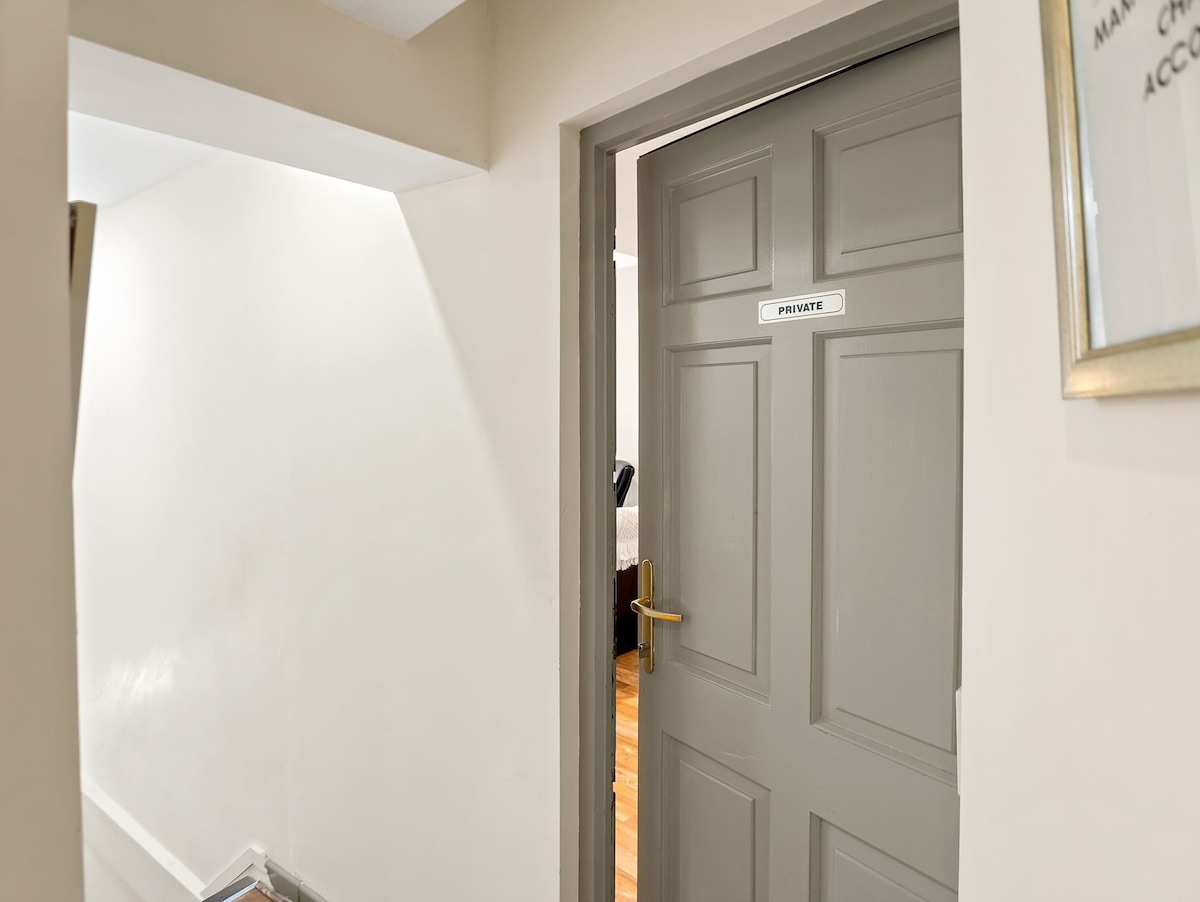 There are internal narrow stairs leading to the apartment from the main Market Street of Clifden