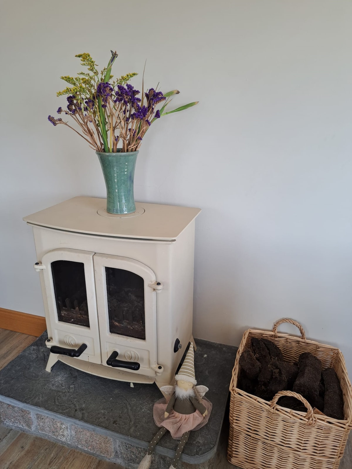 The modern kitchen has a central preparation island, and double doors opening out to the side of the house. Upon entering the kitchen you are immediately struck by the natural light and stunning panoramic sea views from the large window in the dining area and double patio doors. This kitchen is a gourmet delight as it has everything one might need to cook that perfect meal. There is a stove to light in the evening after a fun-filled day touring Connemara and Galway and enjoy an evening meal.