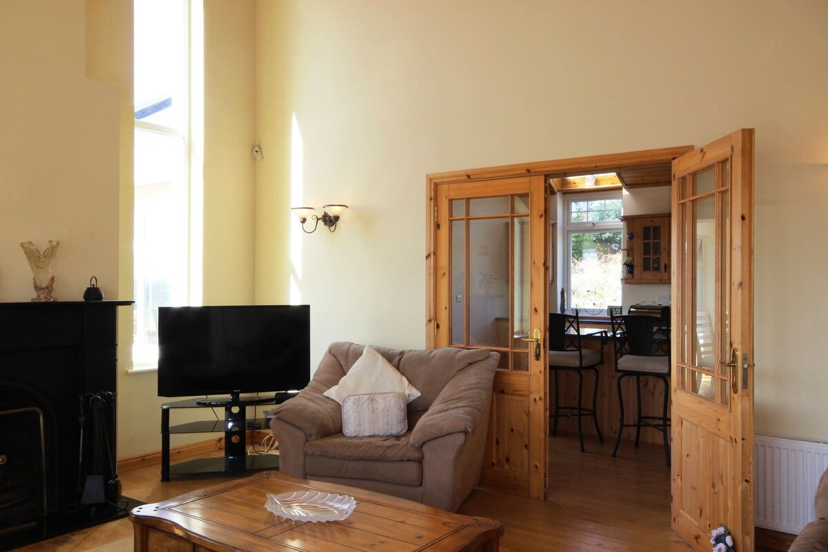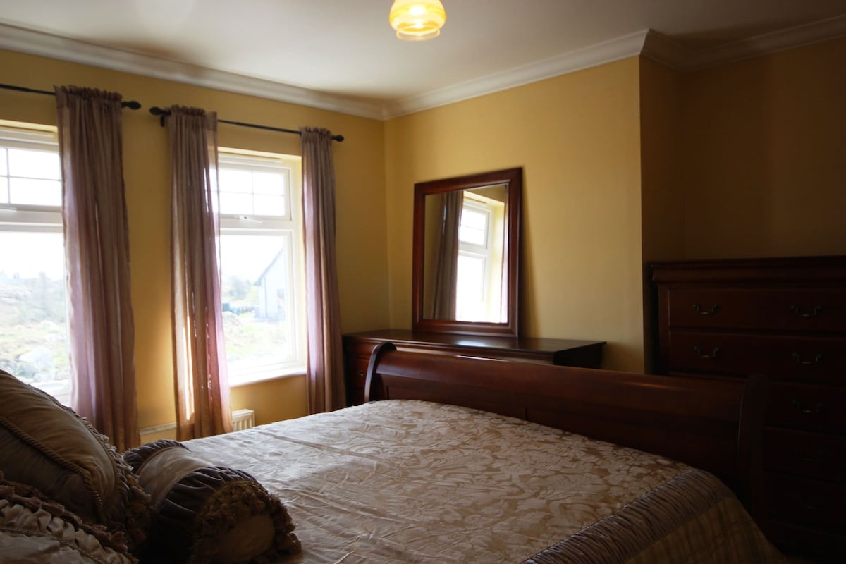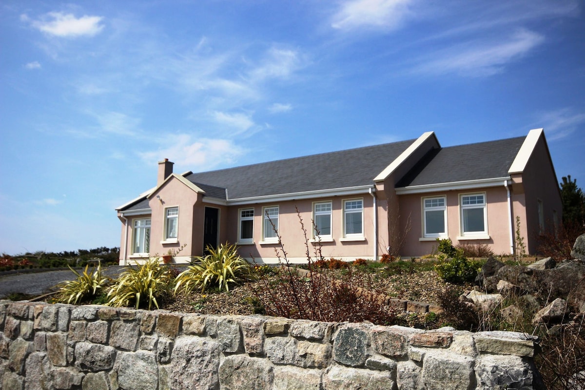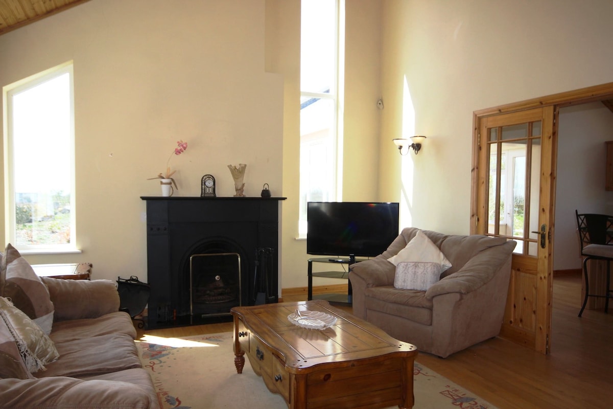 Welcome to the Uplands, which offers luxury and comfort in the peaceful setting of Spiddal. This beautiful bungalow holiday home is family-friendly accommodation offering a spacious and bright relaxing home complete with a large patio ideal for enjoying dining al-fresco with distant views of Galway Bay, Clare Hills and the Aran Islands, this is an ideal holiday base along the Wild Atlantic Way.The reception room has large windows overlooking sea and mountain views, large vaulted ceilings, a cosy couch, an open fireplace, large flat-screen Tv.