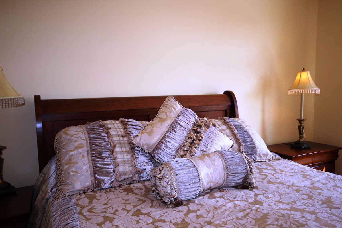 Bedroom 1: Large double bedroom with sleigh double bed and ensuite shower room, window to the side of the house.