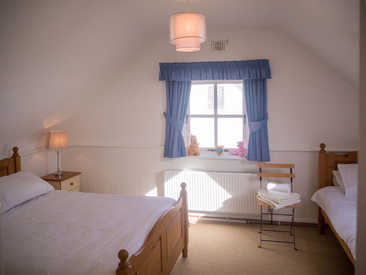 The three bedrooms offer ample sleeping space, with a mix of double and single beds to accommodate up to 5 guests. The two bathrooms, both with showers, ensure everyone has their own space to get ready in the mornings. Additional amenities include a flat-screen Tv, Wi-Fi, and a selection of board games and books, perfect for relaxing evenings in.