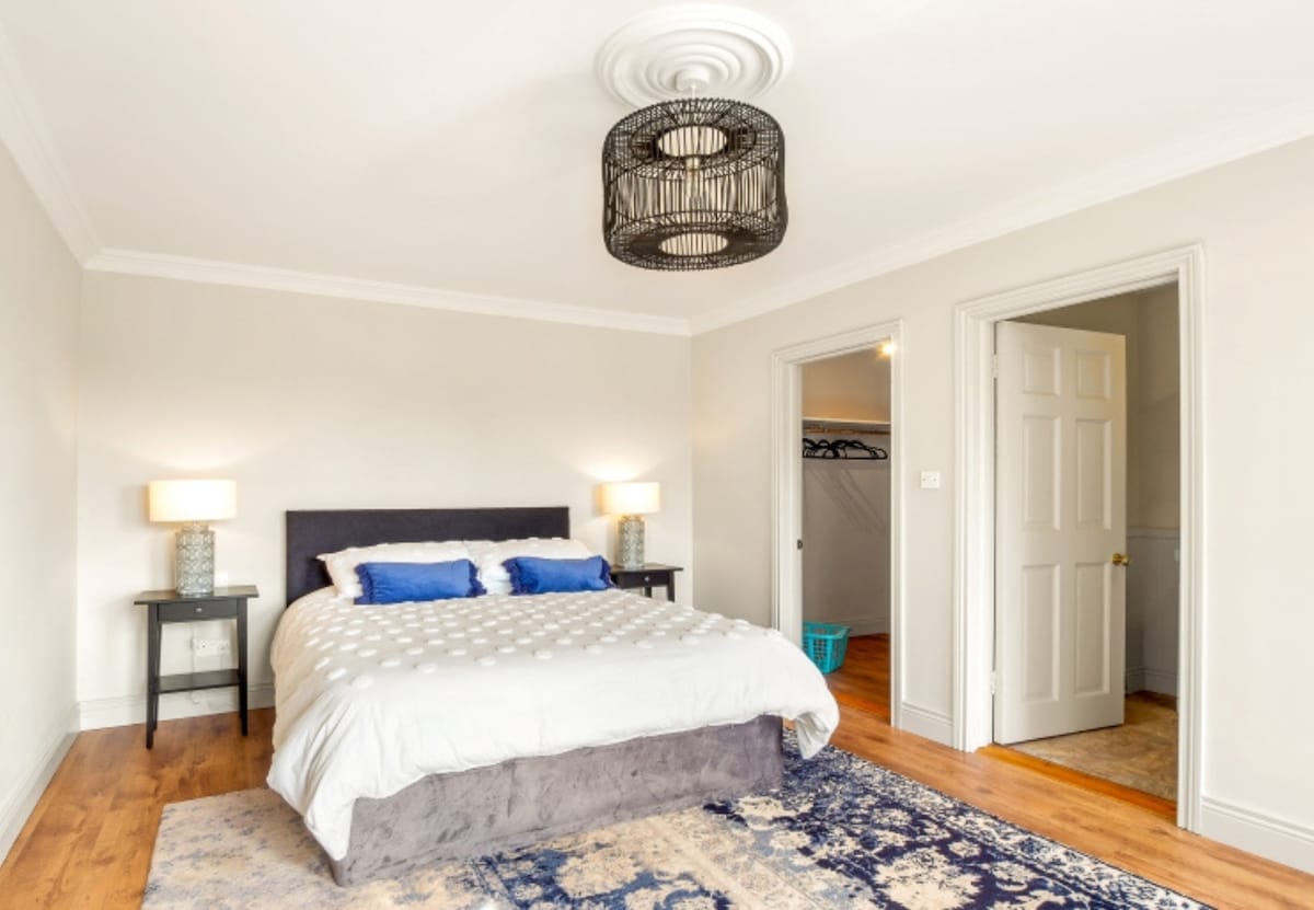 Bedroom 2: 1 King bed, 1 Single bed, on the first floor with a walk-in wardrobe