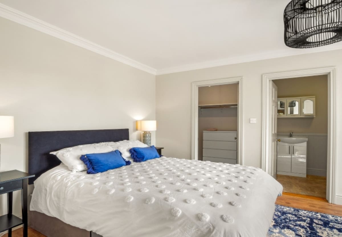 Bedroom 1: 1 King bed, full bath, and electric shower, on the ground floor with a walk-in wardrobe