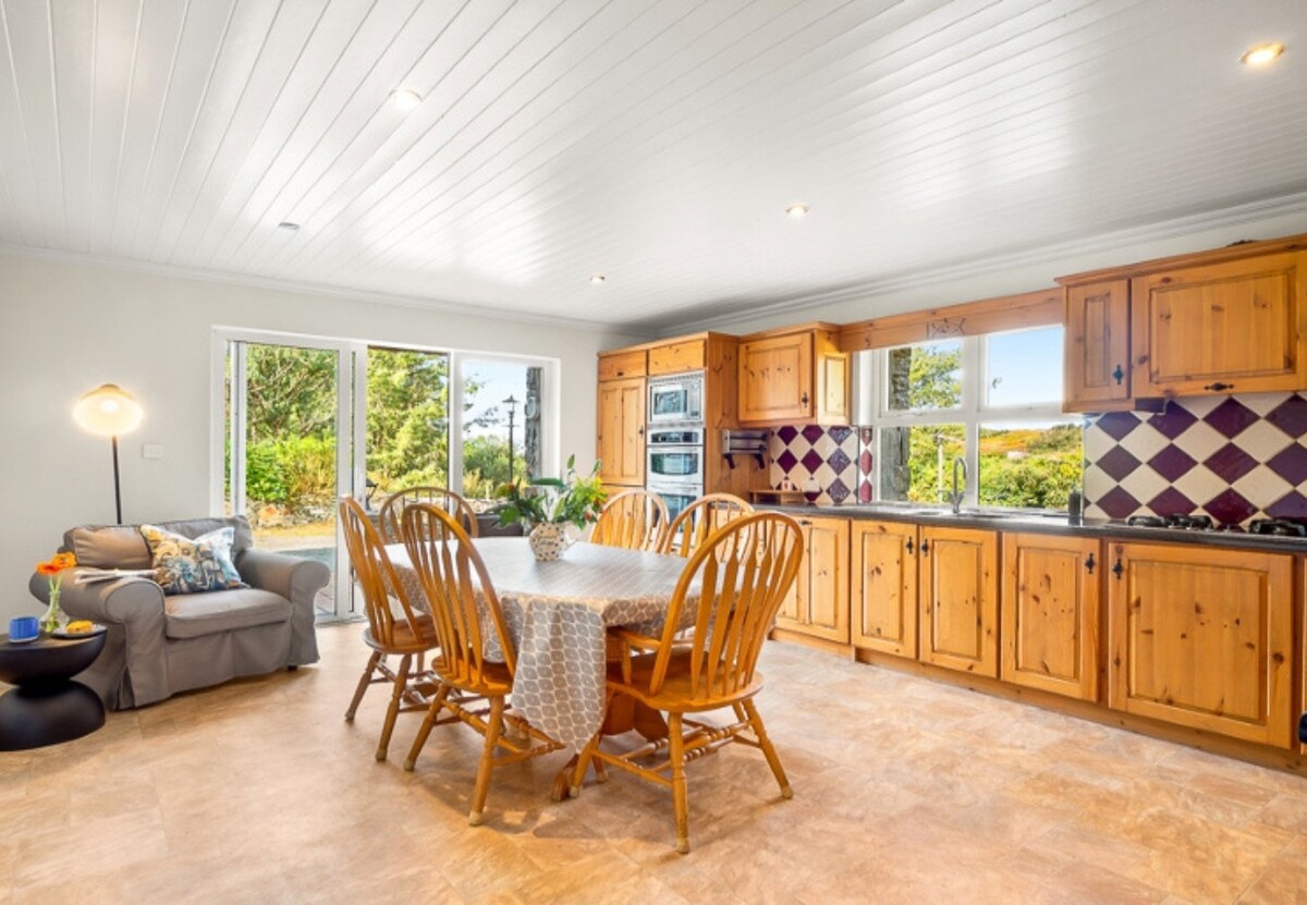 This fabulous property is located in the picturesque Ardbear Peninsular, only 2 miles from Clifden, the Capital of Connemara.Sycamore Cottage is a perfect house for entertaining, spacious bright open plan kitchen/dining room and a large reception room which is suitable for families, couples or friends wishing to get away from it all. Children of all ages will love this property with its large garden and swing set.