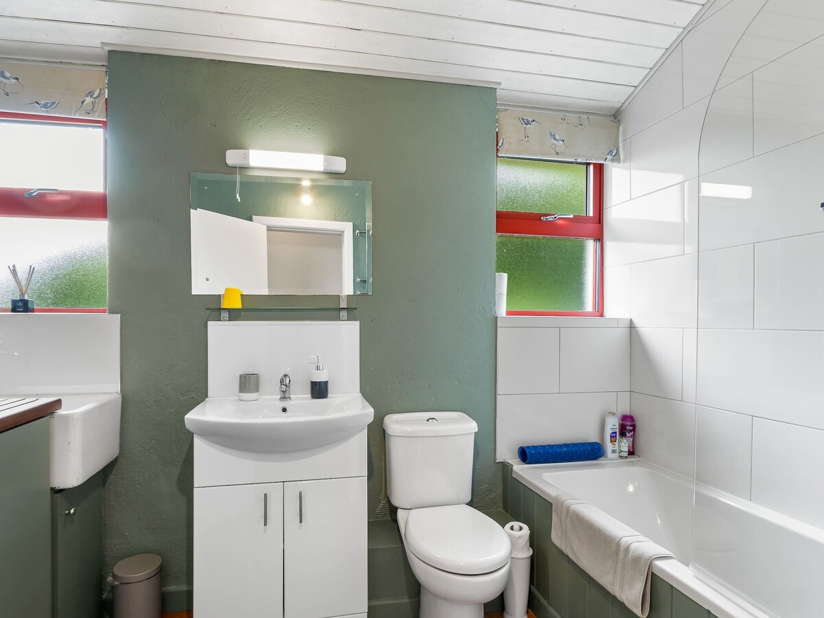 Family bathroom – Equipped with bath with stand-up shower unit, sink, lavatory and washboard.