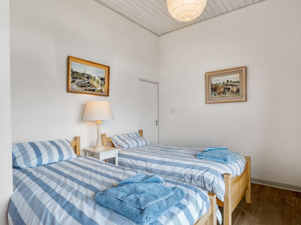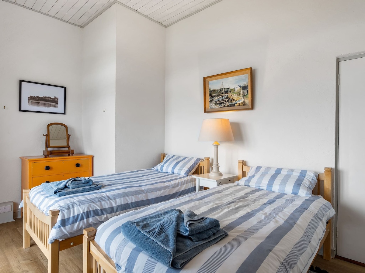 Twin room – This twin room has sea views from both beds a chest of drawers and high-light ceilings.