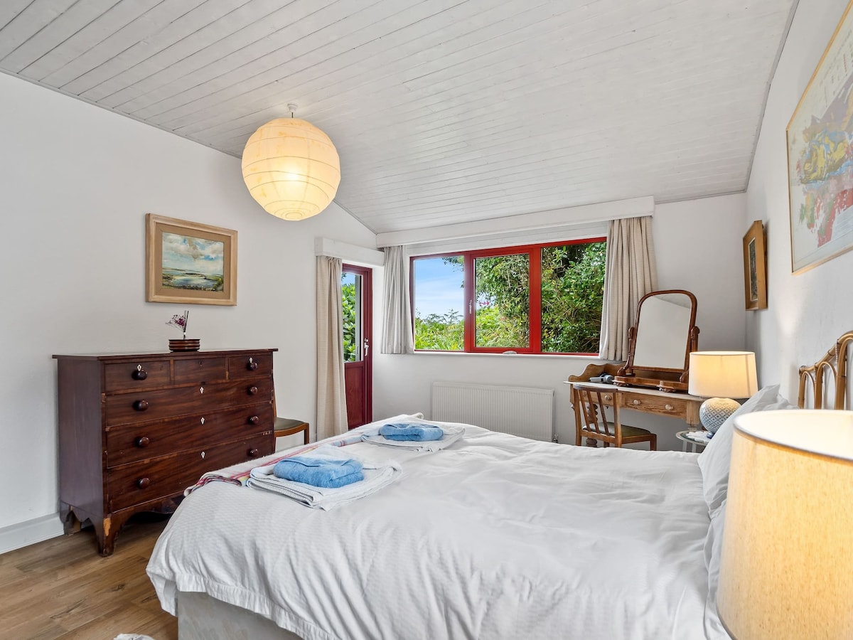 The house is situated at the end of a private drive, out of view of the public road. There is ample parking for 2 cars, a large terrace and about an acre of surrounding land, leading to a private shoreline. A small shed contains wood for the fire, garden furniture and a barbecue. The entrance to the house is via a sheltered porch with space for wet suits, wet clothes and equipment to dry before entering the house.