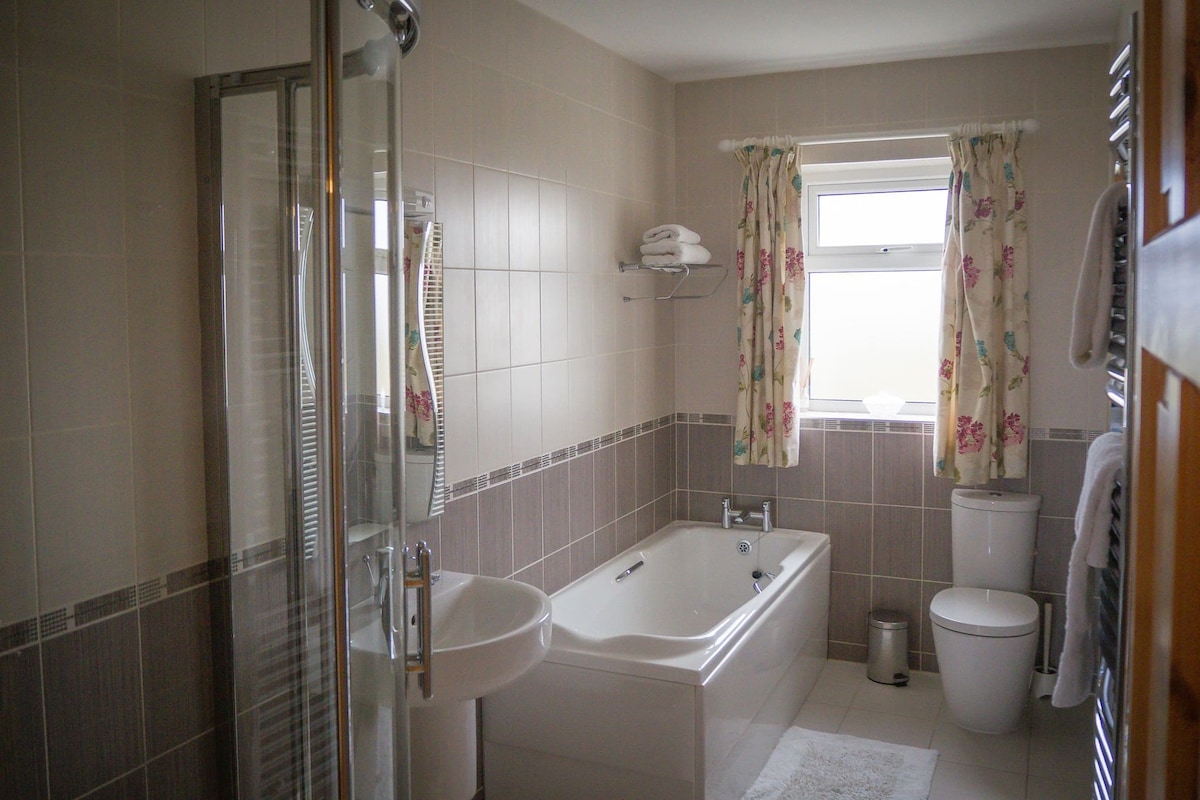 The utility room has a washing machine and a tumble dryer. The house has oil-fired, central heating and solar panels for hot water. All bed linen and towels are provided.