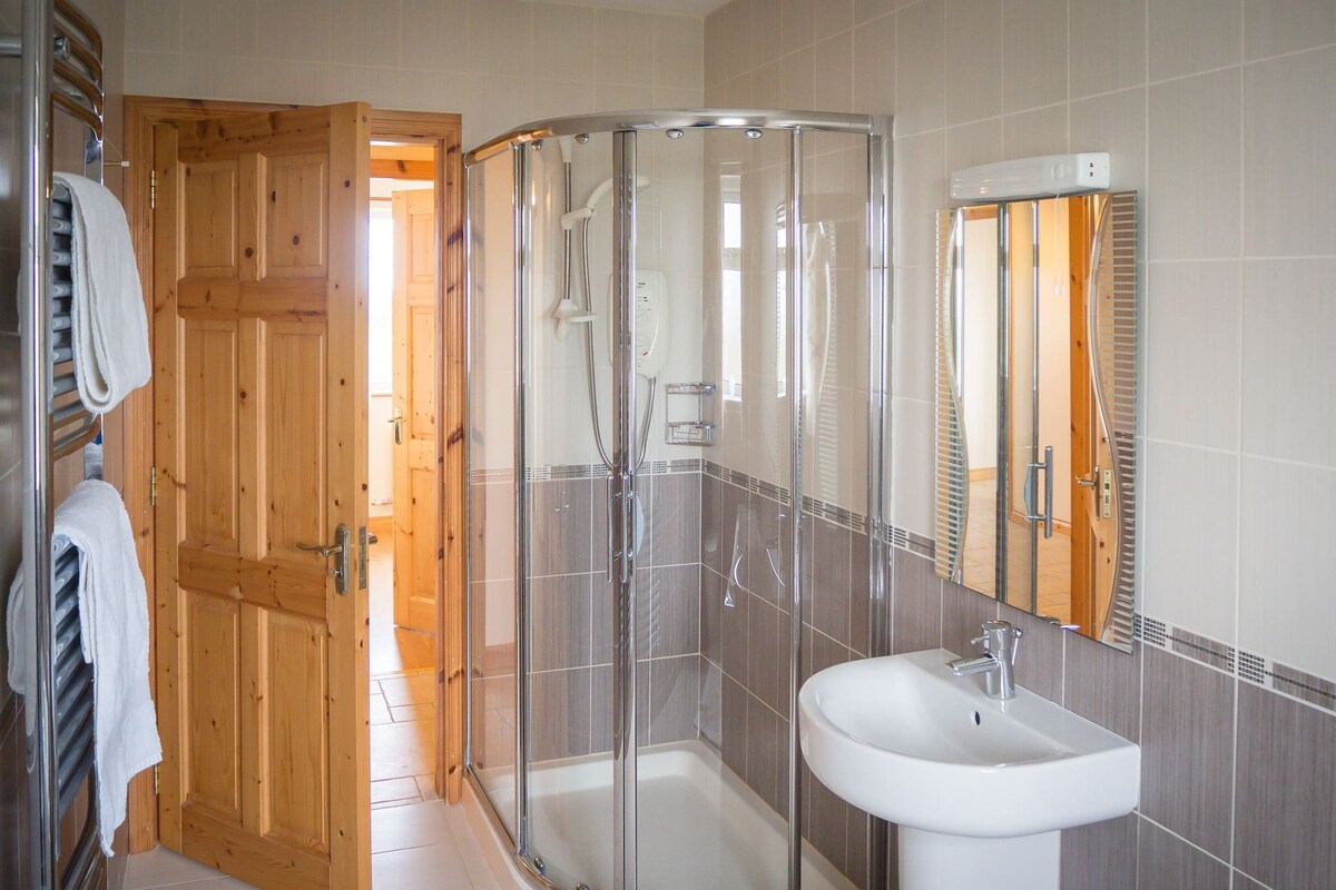 This is a recently built, modern, stone-faced bungalow located in the heart of Connemara. The property boasts three large bedrooms, each with panoramic views of the sea. The master bedroom has an en-suite. The main bathroom has a bath and a separate shower.