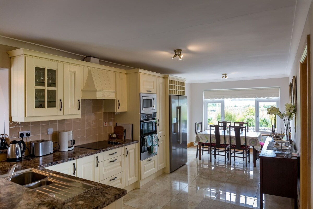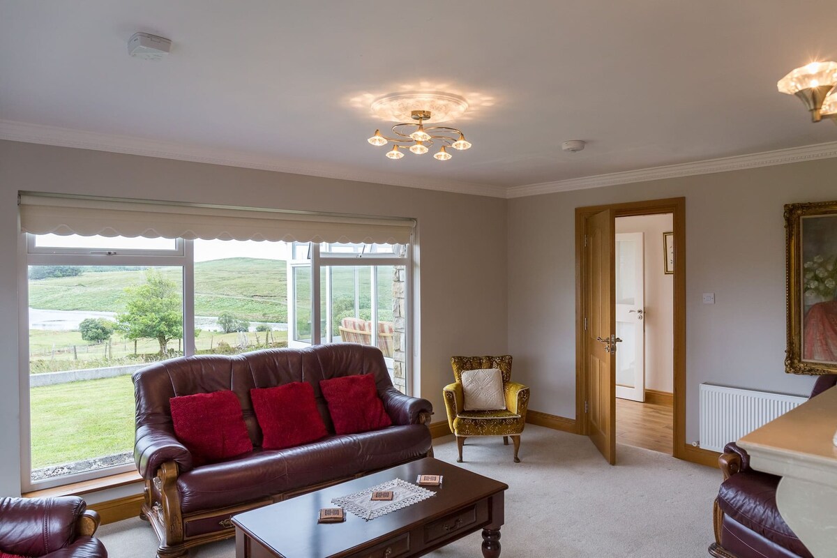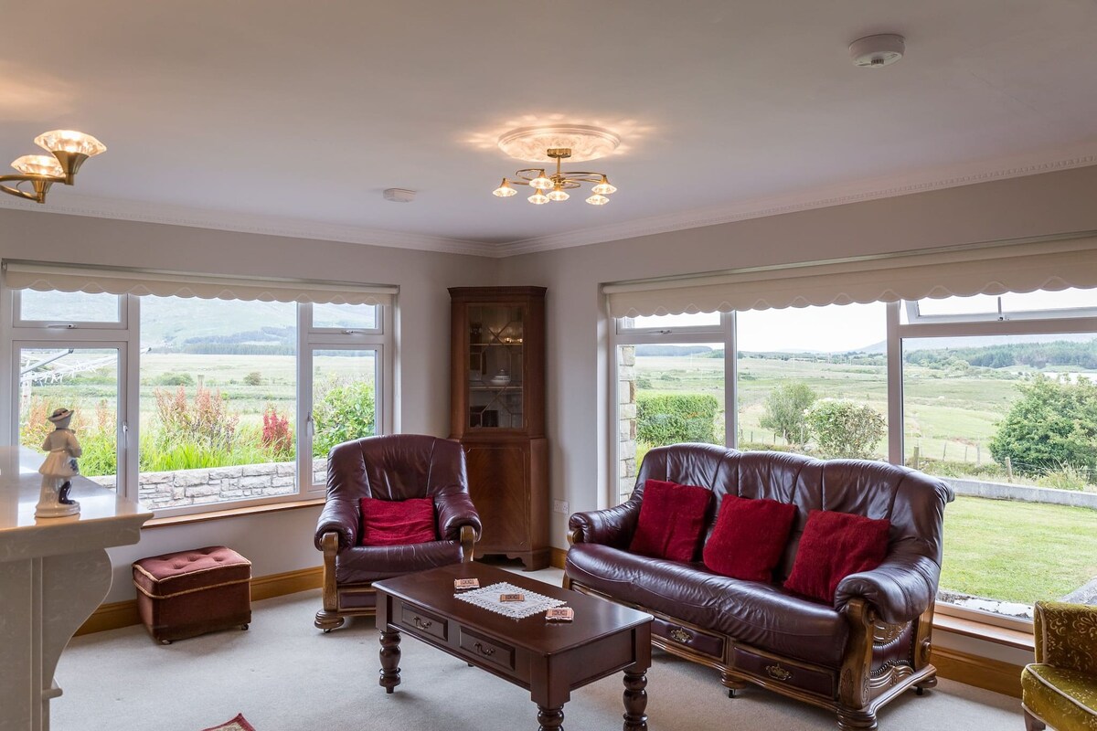 There is a large sun room with stunning panoramic views, comfy furniture which is ideal place to enjoy your morning coffee or sit back in the evening after a fun filled day touring Connemara and enjoy a glass of wine !