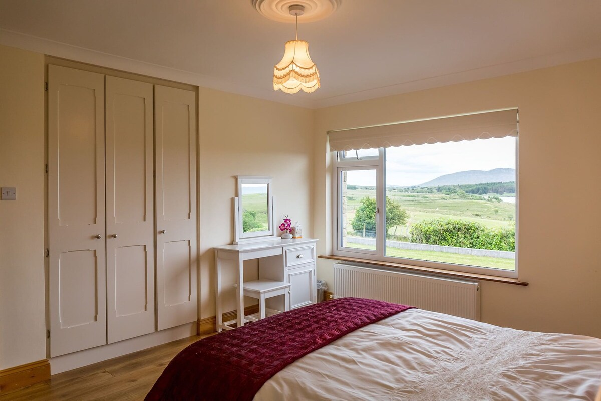 This wonderful self catering cottage is perfectly located sitting proud on an elevated site enjoying magnificent mountain and lake views along the Wild Atlantic Way. Lake View House is beautifully presented, has been newly refurbished throughout offering luxurious accommodation benefiting from large picture windows oozing natural light throughout.4 large bright bedrooms, 1 ensuite shower room, 1 family bathroom, 1 shower room.