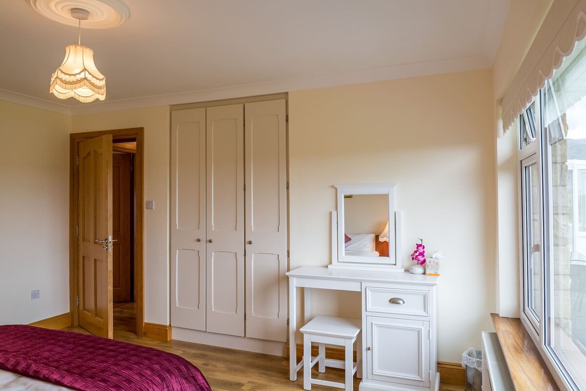 Bedroom 3: Very big double bedroom with wardrobe, dressing table, pull out single bed. Large window overlooking lake & mountain views.