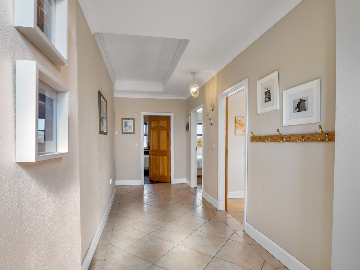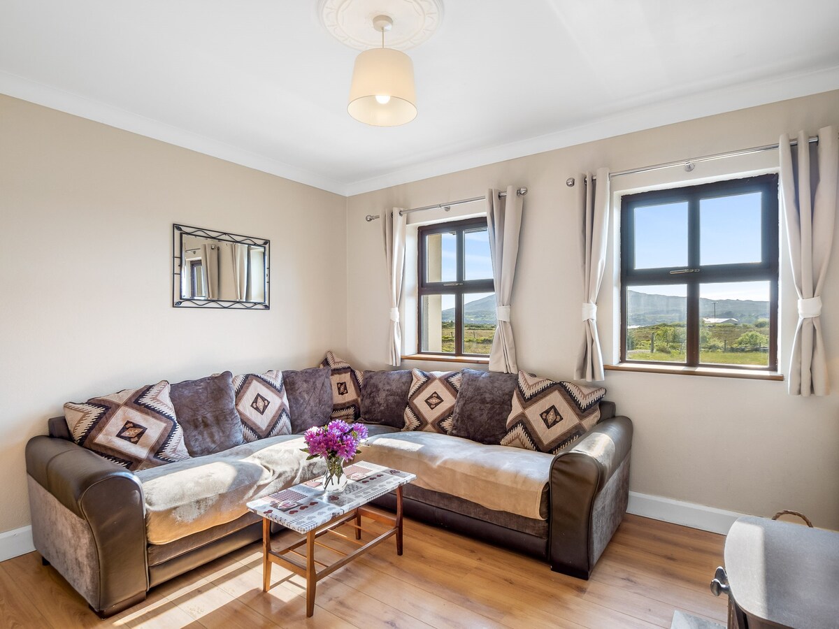 Upon arrival at Inishnee Haven, guests will be welcomed into the bright reception room with an L-shaped couch and flat-screen Tv.