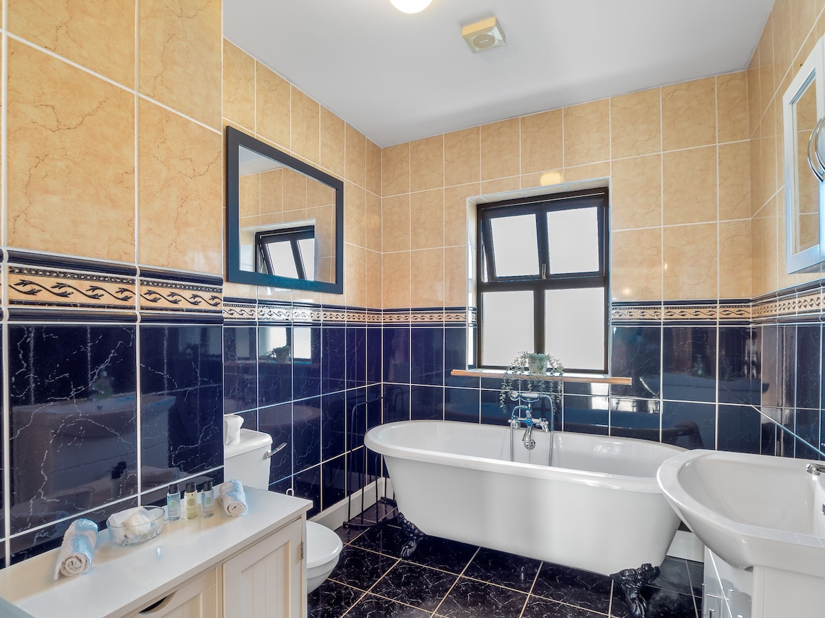 The large open-planned kitchen and dining room offers seating for up to 6 guests, a second couch, and a Stanley range and comes equipped with all mod cons including fridge freezer, dishwasher and microwave.