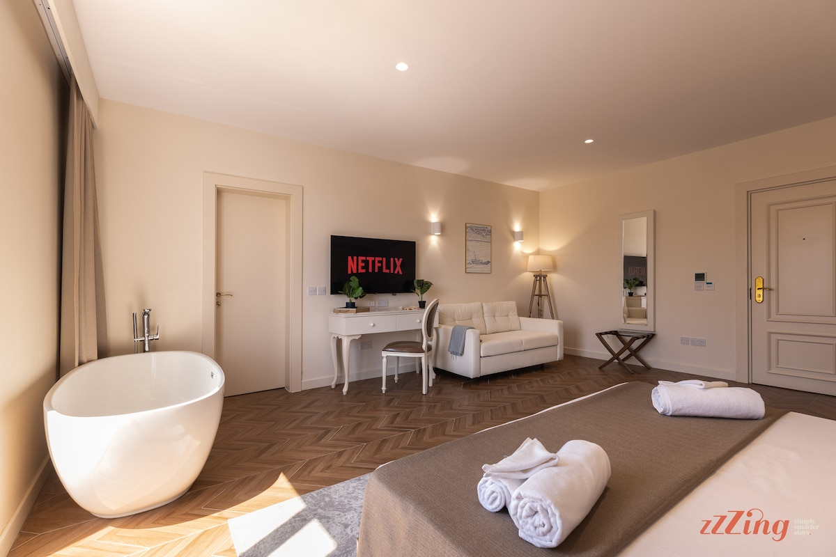 Flooded with natural light this spacious suite room situated on the top floor has an ensuite, a flatscreen TV with Netflix, high-spe