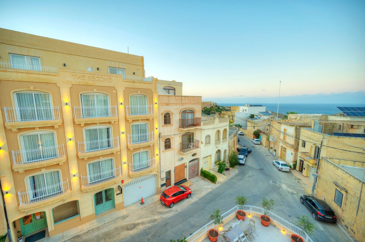 Welcome to The Segond by A+, Gozo’s newest trending hotel for couples, families, and groups, featuring a collection of stunning suites designed for travelers of all ages. With elevated style at affordable prices, the Zzzing team aims to make you feel at home, promising comfort, tons of fun, and a collection of spaces that will make you want to return for more.Our spacious, sleek, and stylish suites come in various sizes, each with elevated amenities that offer laid-back holiday vibes. Enjoy a serene and subdued style with calming neutral color tones, complemented by hues of blue inspired by Malta’s gorgeous blue sea—perfectly capturing island life. Guests are invited to enjoy our Rooftop Pool Area, where the views are breathtaking and picture-perfect. Take a dip in the pool, enjoy your favorite drink, or simply sit and appreciate the stillness. Expect to create beautiful moments and magical memories here. Our property, loved by all, offers majestic scenery and authentic Maltese hospitality.