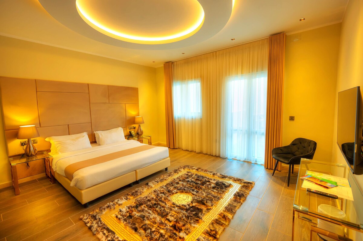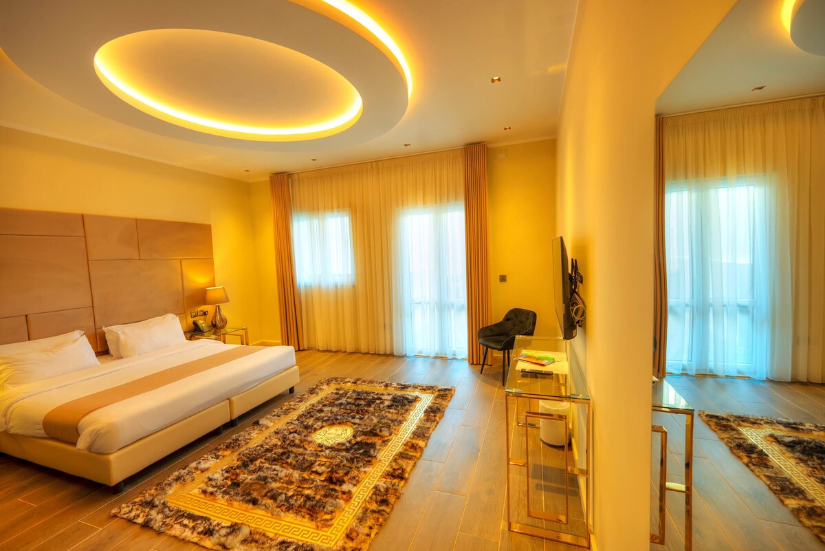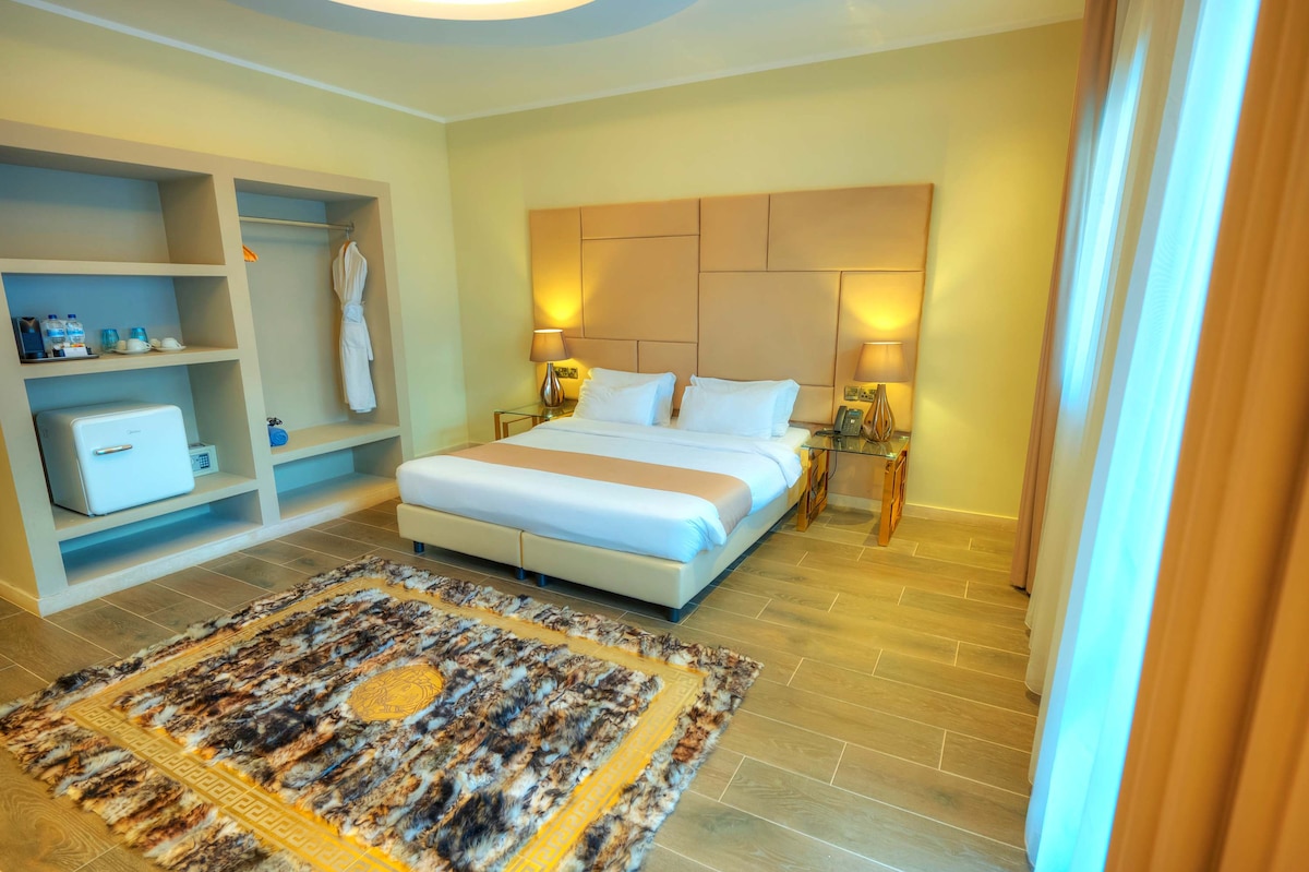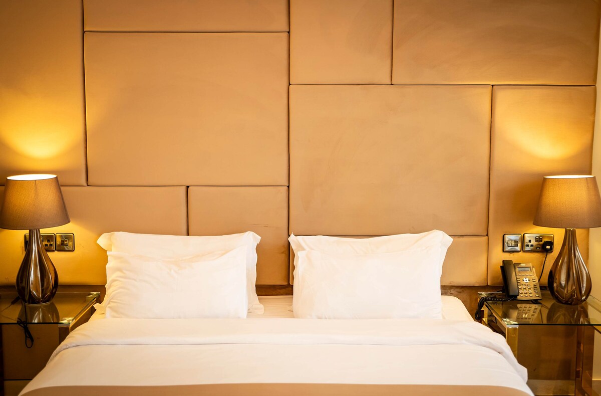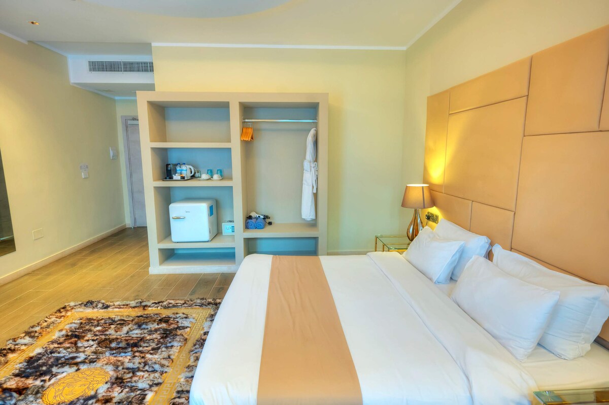 - Spacious room featuring a comfortable king-size bed