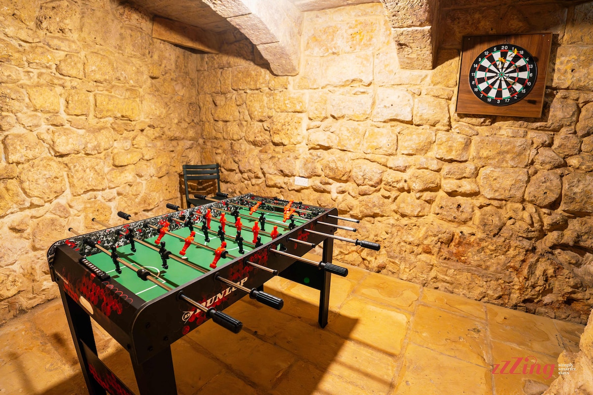 There’s more – the cellars. Rustic, cosy, oozing charm, and truly authentically Maltese. The walls are made of limestone, giving the space a cool and earthy feel. In this traditional setting, a foosball table stands as a fun and social centerpiece. We’ve also added a dartboard for evenings of friendly competition, laughter, and great conversation.