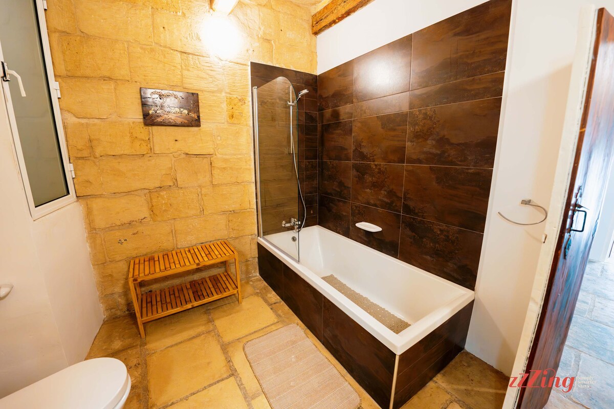 The old stone building provides the perfect first impression of Malta, and stepping inside the property only confirms that this place is a gem of a find. We love the traditional details here – the original stone brick walls throughout the property, the spiral staircase, the quintessentially Maltese doors, and so much more. Combined with the contemporary furnishings, these elements create a warm welcome in the open-plan living area, which includes a Smart TV and leads to the fully equipped kitchen. We’ve added everything you need to prepare your own meals, stock your favourite snacks, or warm up any leftovers. Trust us, you won’t want to cook – this holiday home is surrounded by some of the island’s most popular eateries and traditional coffee spots.With a pair of comfortable double bedrooms on separate floors and two sleek bathrooms – one with a bath and the other with a modern shower – you’ve got everything you need for an incredible stay for four adults. The sofa in the living room transforms into a sofa bed, which is ideal for a fifth guest – preferably a child. One of the main bedrooms leads to a spacious balcony overlooking the traditional streets, which features a stunning hot tub. Treat yourself to a long soak – relax, dream, and plot your next getaway. It’s a beauty. If alfresco living is on your agenda, you’ll be delighted to know that we’ve added a BBQ too – we’re sure you’ll make memories as pretty as our one-of-a-kind holiday home.
