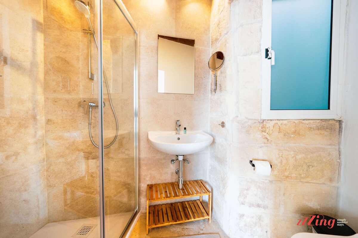 Apartment that matches the listing exactly, very nice, modern. Typically Maltese with its stone walls and terrace on the 3rd floor, nice to enjoy the outdoors but not suitable for eating (spiral staircase). In the middle of summer, we didn't enjoy the jacuzzi, which was 40°C when we arrived: with the help of zzzing who answered our questions immediately, we managed to lower the temperature a little, but I think its use must be nicer in the off-season. Too bad! For street parking, we found it quite easily in the area. There are plenty of places right in front of the apartment, but I think only the Maltese dare to access it because the access at the beginning of the street is so narrow! With my rental car, I didn't dare try. Bus station 5 min away.