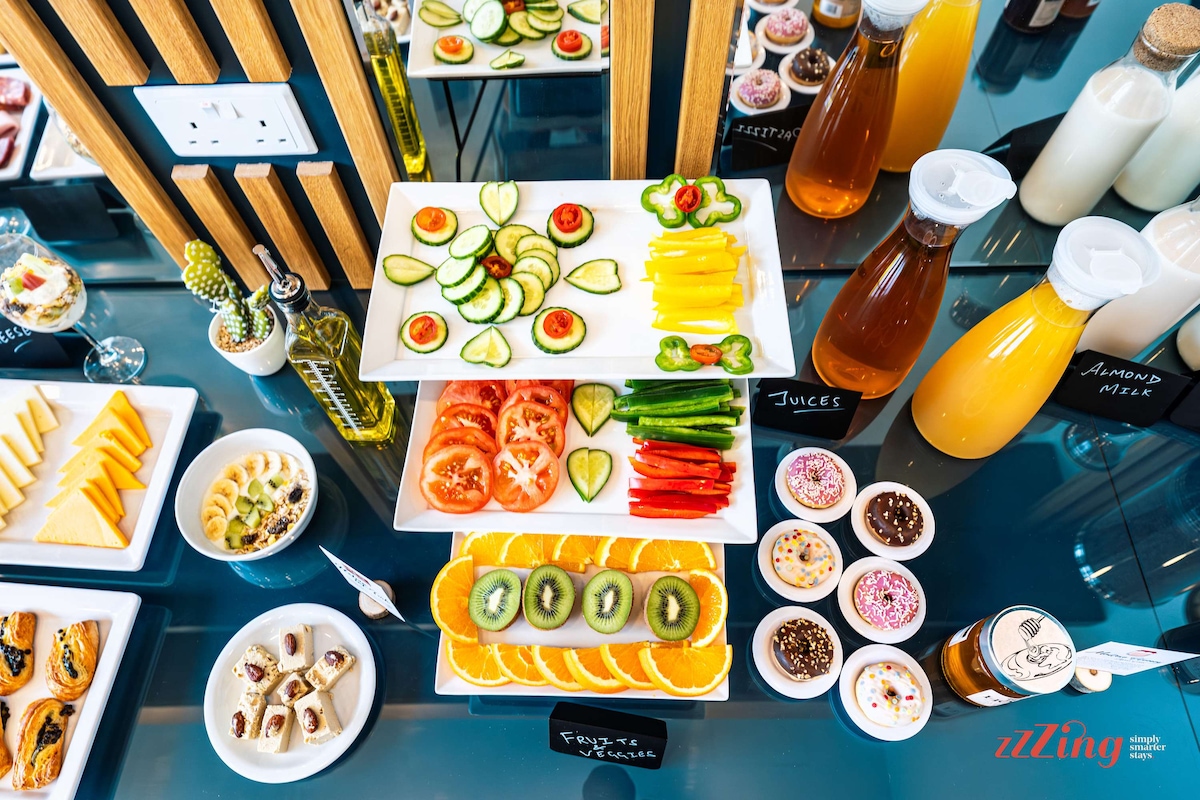Nice room for a one person or a couple. Too small for four in my opinion. Everything in the pictures looked bigger: the room, the pool, the breakfast room - wide lens can be misleading. The bed was big and comfy though. Terrace has a side sea view which may get obstructed in the future as there are building works around. Breakfast selection was pretty good. Lovely deco all around.