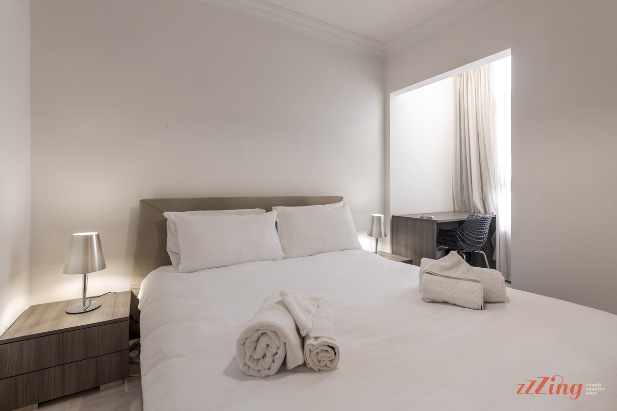 This recently renovated Zzzing property is modern, minimalist and fully equipped. The hotel inspired bedrooms are spacious and the stunning sea views from the balcony are a highlight as is the fully equipped kitchen which is ideal for travelers who are staying for a longer period or prefer to prep their own meals. For those who love dining out they’ll be spolit for choice as this apartment is surrounded by some great eateries.A desk has been added to one of the bedrooms for remote workers or learners and a nicely sized Smart TV with Netflix is a plus!