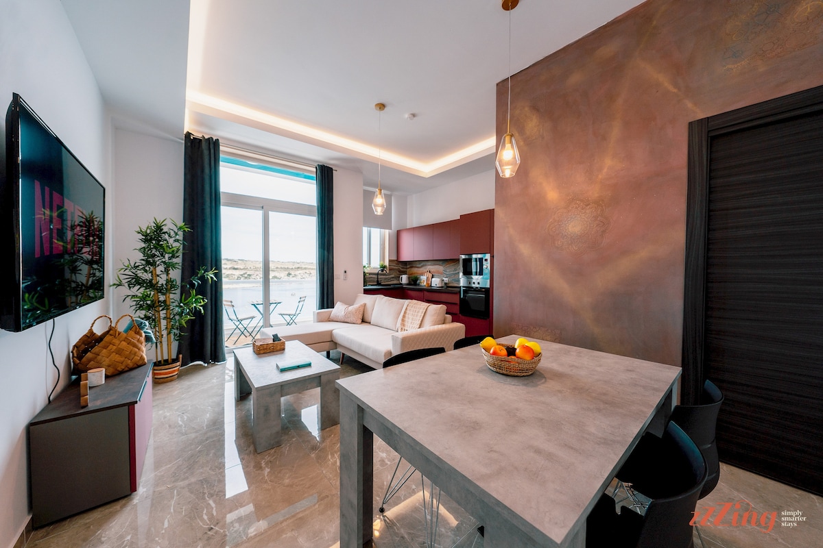 Beautiful during Malta’s long Summers and warm Winter months, this one bedroom seaside penthouse is flooded with natural light and is a favourite with all types of travelers.The spacious double bedroom has a dedicated remote working desk as well as a small back balcony. The main open plan space includes a dining room area, a fully equipped modern kitchen which has everything you need to prepare your own meals - it’s a delight to cook in although we must note that there are tons of restaurants in the area that guests love to dine at. Of course, Netflix has been added for guests to enjoy in the living room - the sofa is super comfy - 5 stars.