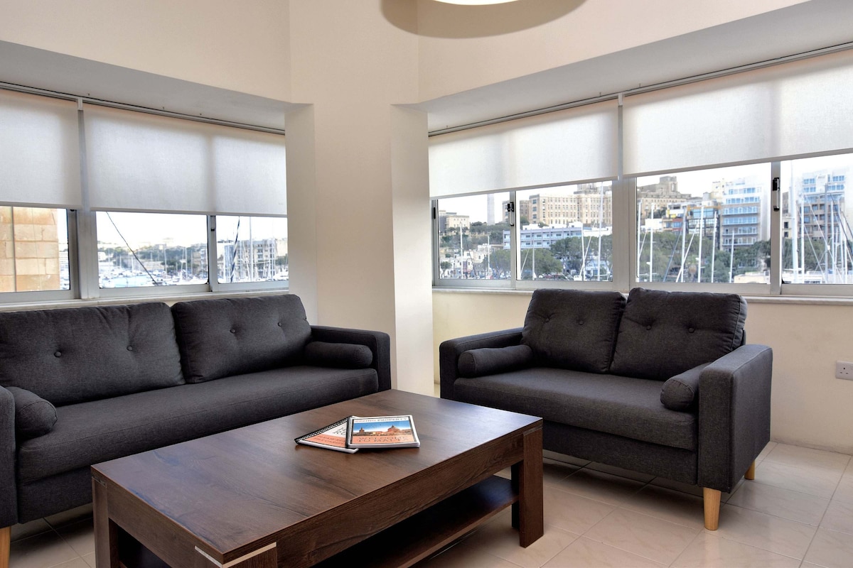 This spacious, airy, and bright 2-bedroom apartment with the sea view is suitable for friends, families, and any kind of traveller. It is located centrally in Ta'Xbiex seafront, 5 minutes walk from the nearest rocky beach. The place is surrounded by restaurants, cafeterias and one of the best ice creams. The stunning view of Ta'Xbiex harbour and Valletta is surely something you don't want to miss!