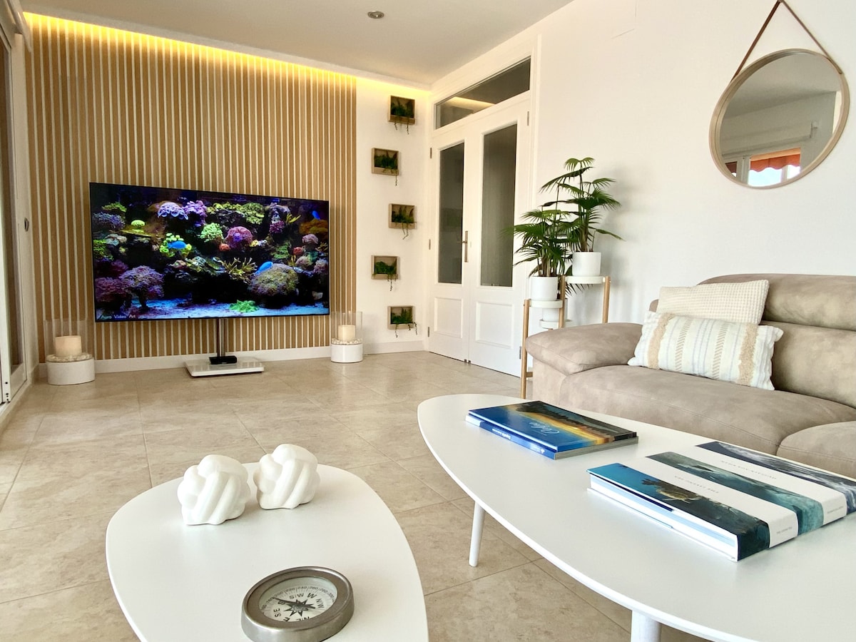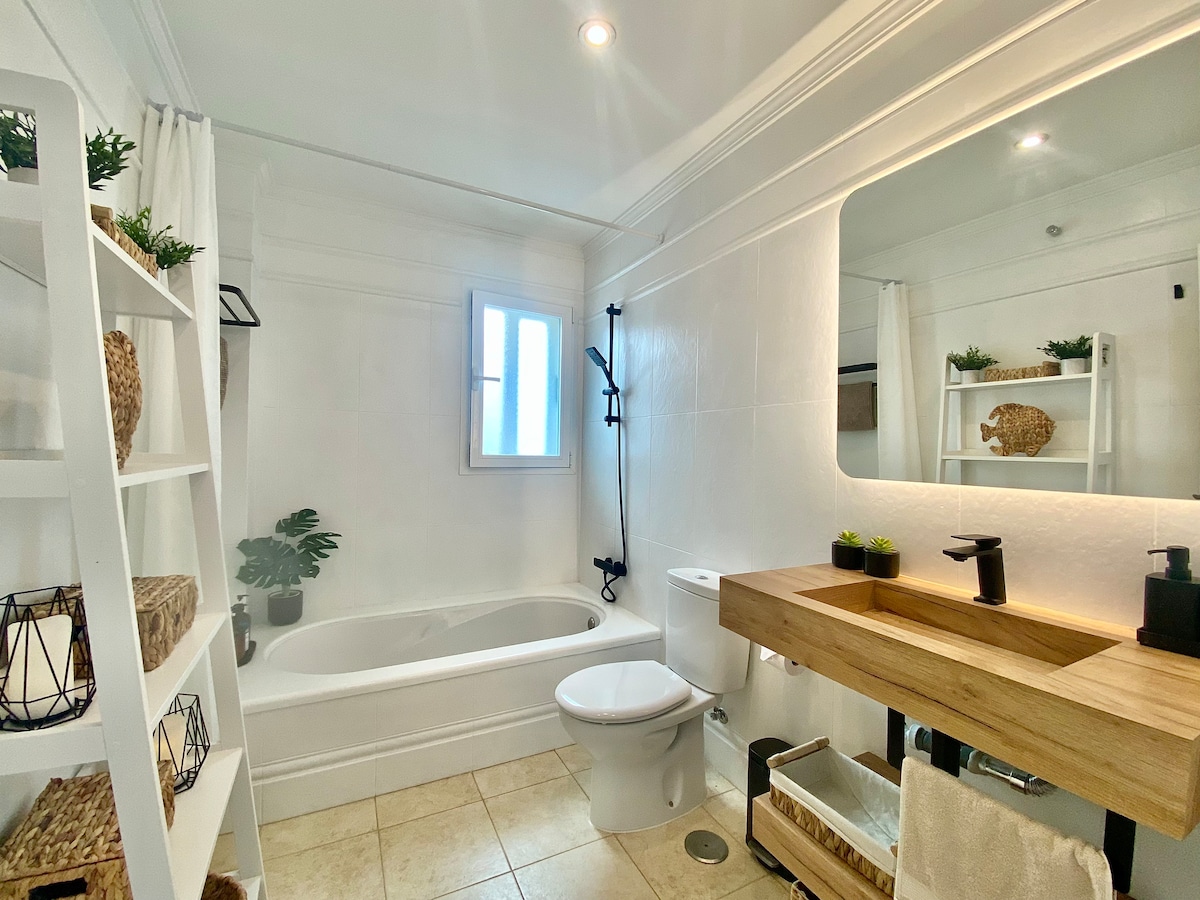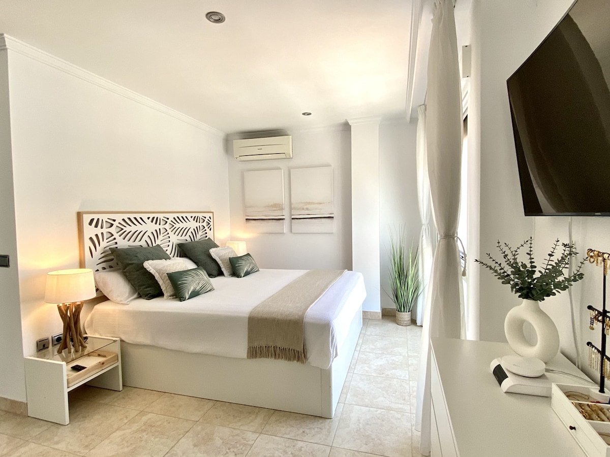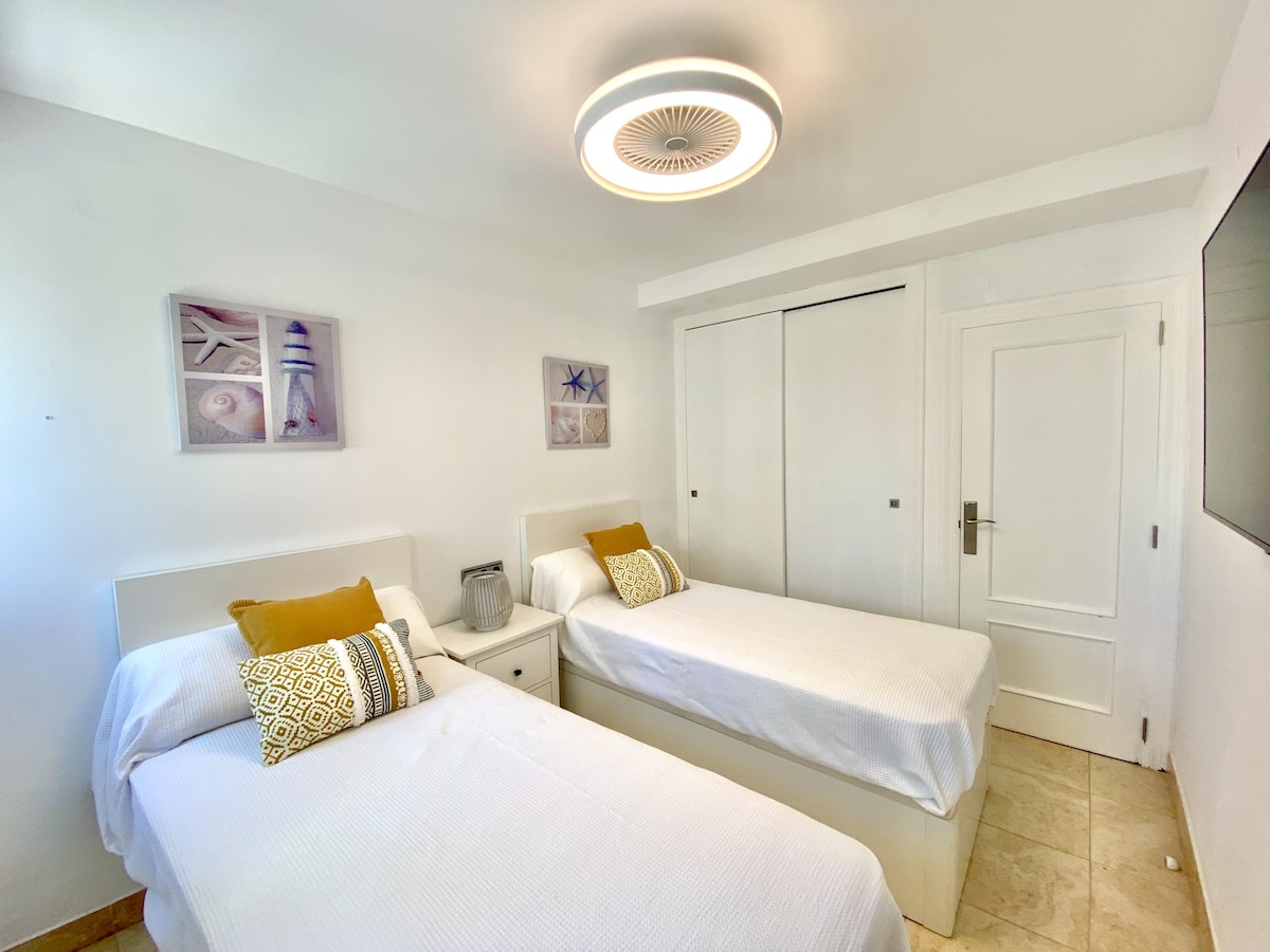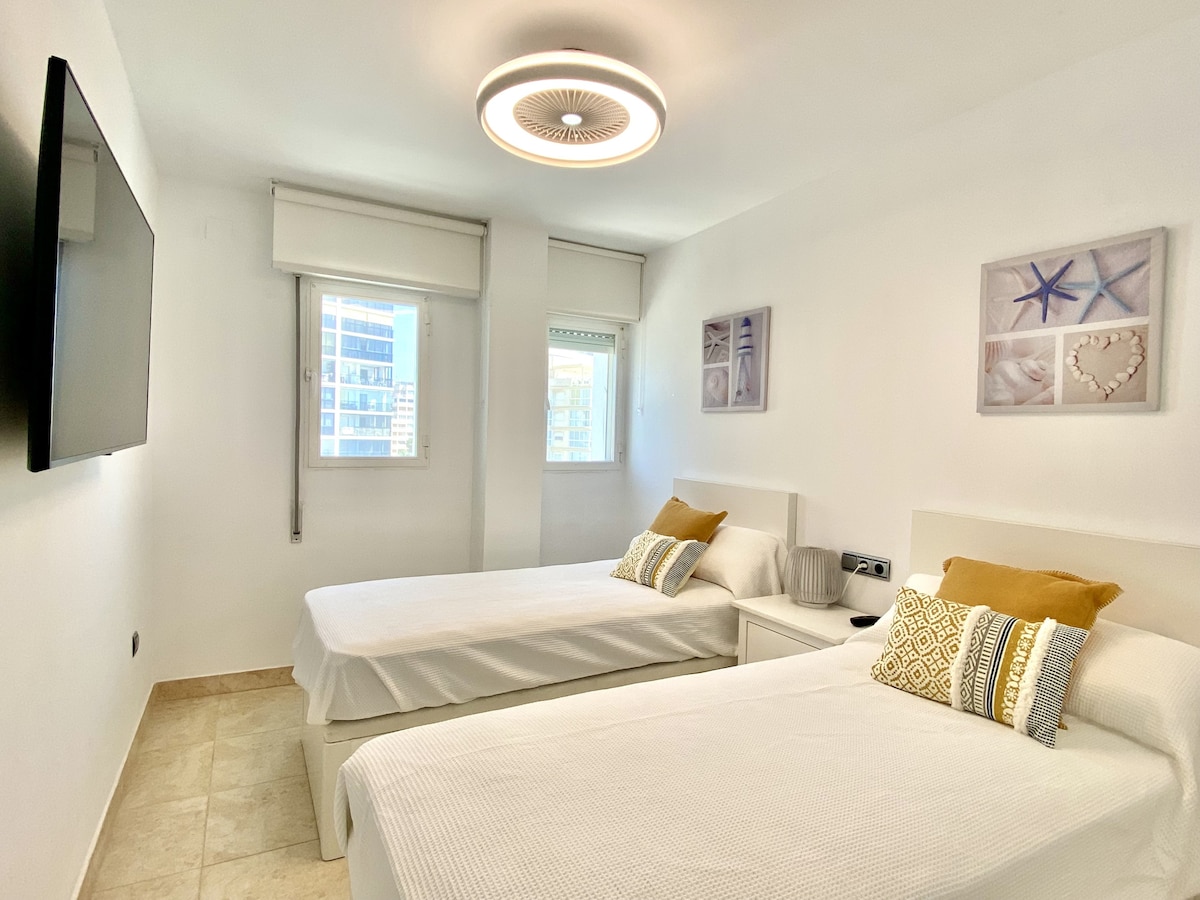 Escape to a world of serenity and comfort with this lovely penthouse in Calpe. Immerse yourself in the ultimate beachfront living experience with breathtaking views of the Mediterranean and direct access to the pristine Arenal beach, just a stone's throw away. Enjoy the convenience of having everything you need within walking distance, from vibrant restaurants and bars, to shopping and supermarkets. Step inside this luxurious penthouse and feel yourself being transported to a world of comfort and style. The air-conditioned living and dining room provides the perfect setting for you to relax, unwind and spend quality time with loved ones. Admire the stunning sea views from the covered balcony and make yourself at home in one of the two spacious bedrooms and two modern bathrooms. For your convenience, the penthouse comes with a private and enclosed parking space, making it easy for you to come and go as you please. Whether you're looking for an action-packed holiday or a relaxing retreat, this penthouse in Calpe offers something for everyone. Book your stay today and experience the beauty of the Costa Blanca in style.Costa Blanca and Costa CarpeDiem are waiting for you!Interior of the penthouseair conditioned living room with televisionair conditioned dining roomcovered balcony2 bedrooms and 2 bathroomssafelaundry room with washing machineKitchenkitchen with electric hob, electric oven, microwave, dishwasher, refrigerator-freezer, coffee machine, electric kettle, toaster and juicerBedrooms and bathroomsair-conditioned bedroom with king size bed, television and bathroom en-suitebedroom with 2 single beds, television and fanen-suite bathroom with single washbasin, bath/shower combination, bidet, toilet and hairdryerbathroom with single washbasin, shower and toiletExterior of the penthouseprivate enclosed covered parking spaceMore informationnearest town Calpe (within 100 meters of the house)nearest riverbank or shore Mediterráneo (within 25 meters of the house)direct access to the beach (Arenal Bol)nearest port within 1000 meters of the housenearest park within 500 meters of the housenearest airport Alicante (within 100 kilometers of the house)second nearest airport Valencia ( > 100 kilometers of the house)public transport bus within 100 meters of the housesmoking not allowedpets are not allowedwheelchair friendly accommodationThe building where the accommodation is situated has en elevator.The accommodation is very suitable for families with childrenFacilities and services included in the rental price of the penthouseinternet (WiFi)iron and ironing boardbed linen and towelsair-conditionedFacilities and services at extra chargecentral heatingEntertainment and leisure activities for your holidays in Calpe, Costa Blancabar and promenade (within 500 meters from the house)cinema (within 1000 meters from the house)amusement park (Terra Mítica, Festilandia), theme park (Mundomar), zoo (Safari Aitana), wild life park (Terra Natura) and water park (Aqualandia y Aqua Natura) (within 25 kilometers from the house)Sights and culture in Calpe, Costa Blancamuseum (Coleccionisto, Histórico), church (Nieves y Merced), monument (Baños de la Reina), architectural building (Edificios Bofill) and historic place (Casanova,) (within 1000 meters from the accommodation)Sportstennis, horse riding, diving, surfing and waterskiing (within 1000 meters of the house)golf (Golf Ifach y Altea Golf), hiking, cycling, climbing and windsurfing (within 5 kilometers of the house)Other things to note