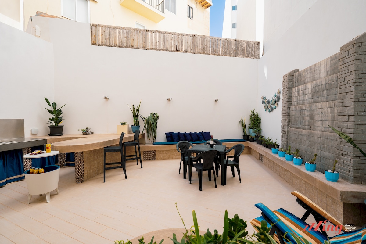 Outdoor spaces are equally enchanting. From the inviting front terraces framing the living room to the side terrace boasting distant sea views, this home truly blends indoor and outdoor living. But the showstopper is the backyard — a charming nook complete with a kitchenette and a state-of-the-art BBQ setup. Pair your alfresco cooking with Malta’s finest wines like Gellewza or Girgentina, or a cold bottle of Maltese Cisk beer, and you have everything for an unforgettable evening under the stars.
