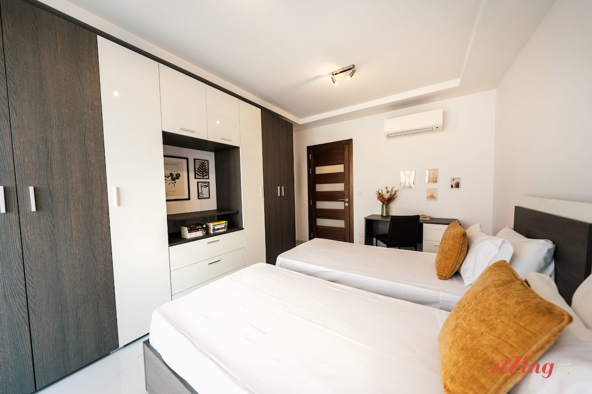 Brand new, stylishly designed and really spacious, this two double-bedroom apartment is a perfect space for couples, families and small groups visiting the Maltese islands for work, fun or both. Walk into a large living room space - minimalist yet includes absolutely everything you need including a large Smart TV and a very comfy sofa. On one side the open space leads to a fully equipped kitchen with everything you need to prepare your own meals and a really cute breakfast bench. On the other side, you’ll find a spacious balcony that has outdoor furniture which makes it the perfect spot for a morning or sunset drink. It’s also a really great place to catch up with your team at the office or read a good book. Outdoor living in the Maltese islands is grand. This Zzzing Home is a rare find and it could be your home away from home if you act fast and secure your preferred dates.Guest access