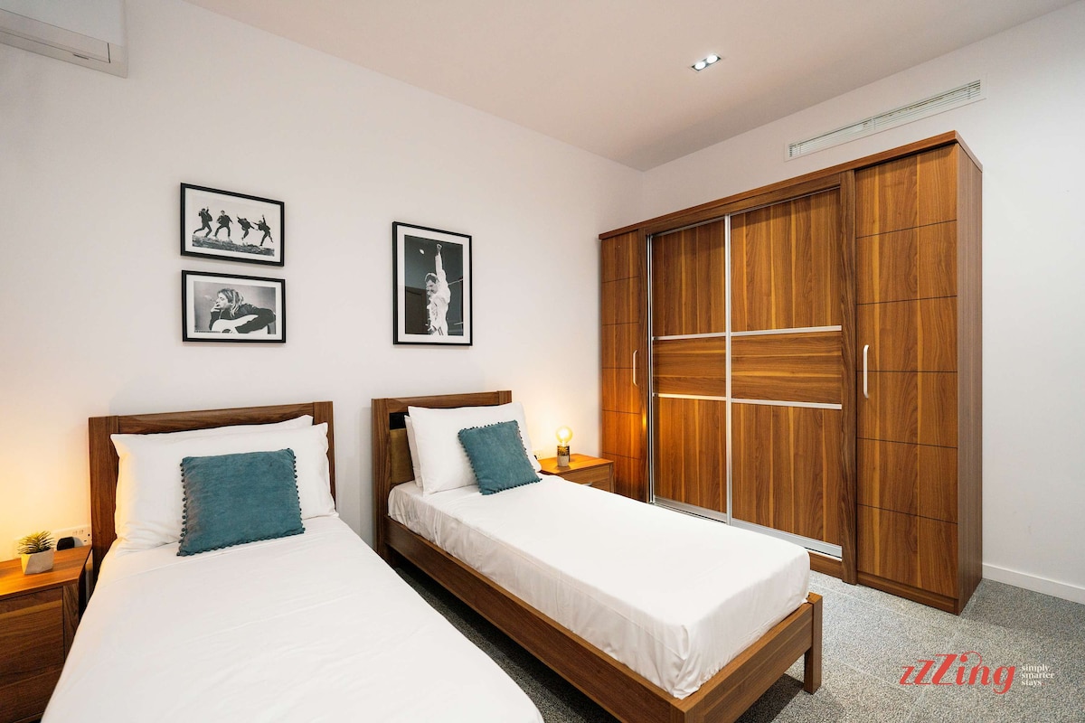 Brand new, stylishly designed, and really spacious, this three double-bedroom apartment is a perfect space for couples, families, and small groups visiting the Maltese islands for work, fun, or both. Walk into a large living room space - minimalist yet includes absolutely everything you need including a large Smart TV and a very comfy sofa. On one side the open space leads to a fully equipped kitchen with everything you need to prepare your own meals and a really cute breakfast bench. On the other side, you’ll find a spacious balcony that has outdoor furniture which makes it the perfect spot for a morning or sunset drink. It’s also a really great place to catch up with your team at the office or read a good book. Outdoor living in the Maltese islands is grand.Next, you’ll walk through the wide corridor where you’ll find a collection of three double bedrooms two of which have an ensuite. Our 'think pink' fashionista room (two single beds) includes vintage magazines, posters, and some of our favorite award-winning brand books. Our F1 room (two single beds) has F1 posters that will get you into the spirit for the next Formula 1 race and our third double bedroom (with two single beds) has iconic vintage vinyl and music posters of everyone’s favorites.