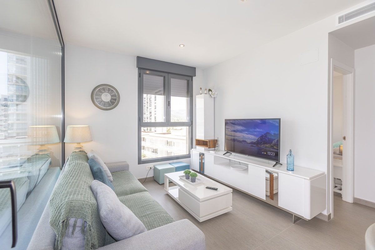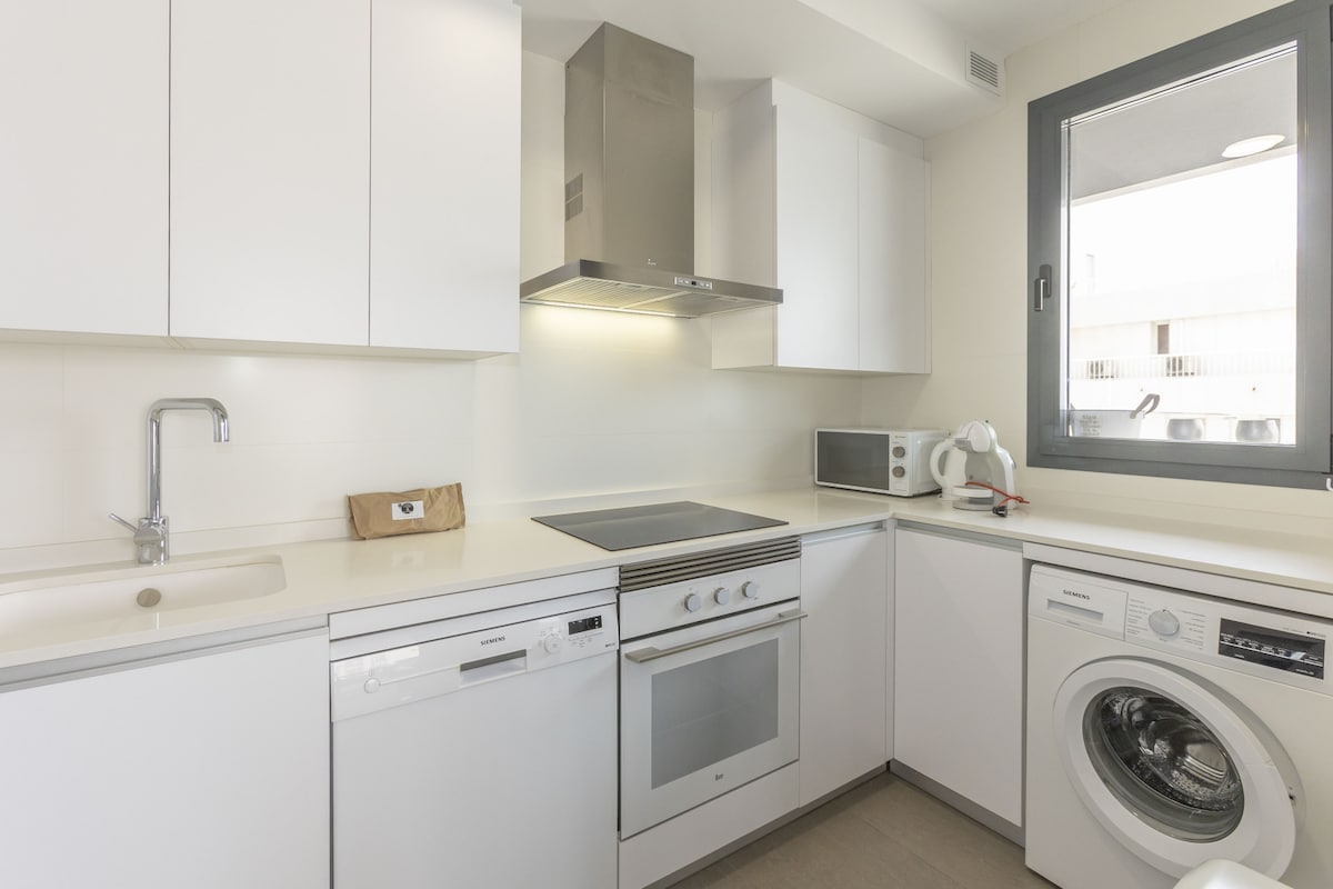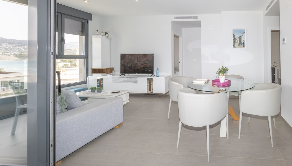 Floor to ceiling windows, front row seats over the blue waters of Arenal Beach, and within strolling distance to the must-see spots in Calpe – these are just a handful of reasons to fall in love with the luxury of Infinium Apartment.While traditional Spanish properties certainly have their charm, sometimes the bliss of a bright new building lends itself well to stress free stays. This two-bed two-bath top of the line apartment has all those added extras – the cool breeze of air-conditioning, WIFI, private parking, modern kitchen, and more.Perched on the sandy shores of Arenal Beach with its Blue Flag status, the apartment sits high enough to enjoy those unrivaled views out across the ocean. From the second you step inside you see the whole apartment has been curated around making the most of those show-stopping sunset vistas.