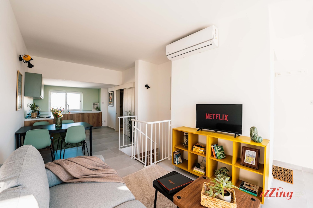 Staying in this very attractive, hotel-inspired duplex with two large double bedrooms gives you five times the space of your average hotel suite, an outstanding terrace, and a fully equipped kitchen where you can prepare your own meals, stock your fridge, and take charge of your time in Malta. The textiles, furnishings, and artworks have been carefully selected to create harmony within the neutral color palette, a feature that guests from all over the world love. It’s stylish—you’ll love it.Your "home away from home" features two double bedrooms (sleeping spaces that will empower you to refuel your body and mind with truly restorative sleep, just like you deserve), two bathrooms (one of which is an ensuite), a spacious living room with a Smart TV, a dining area, a fully equipped kitchen, and private laundry facilities. Guests also love the private terrace—perfect for relaxed drinks, with the golden hour being everyone’s favorite time of day—magical. Literally, you have it all.