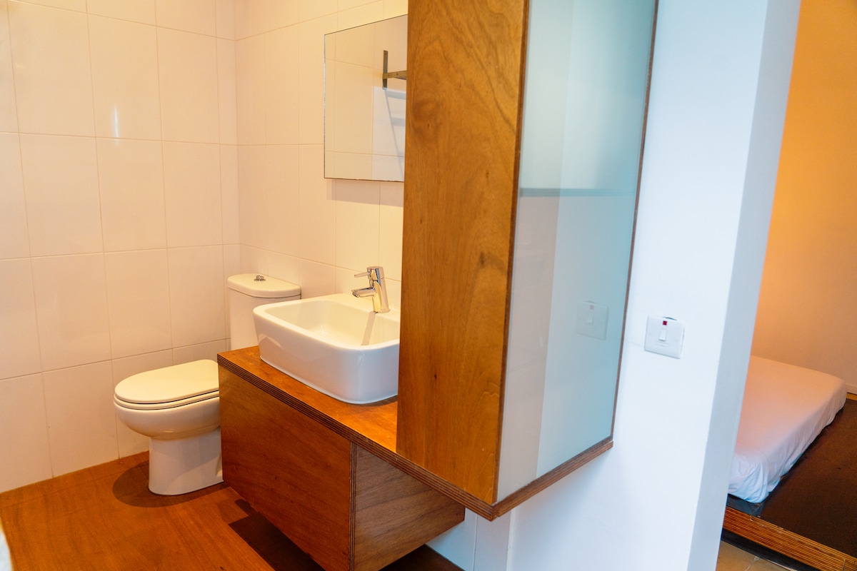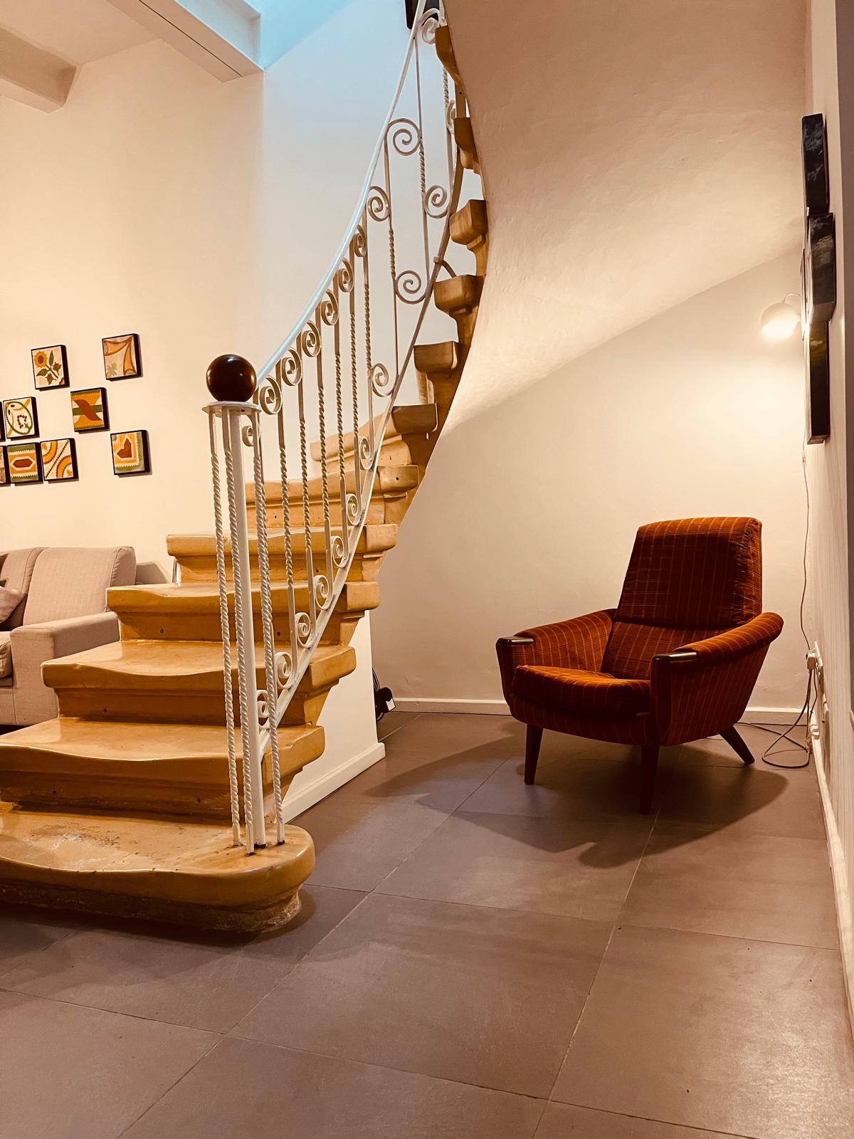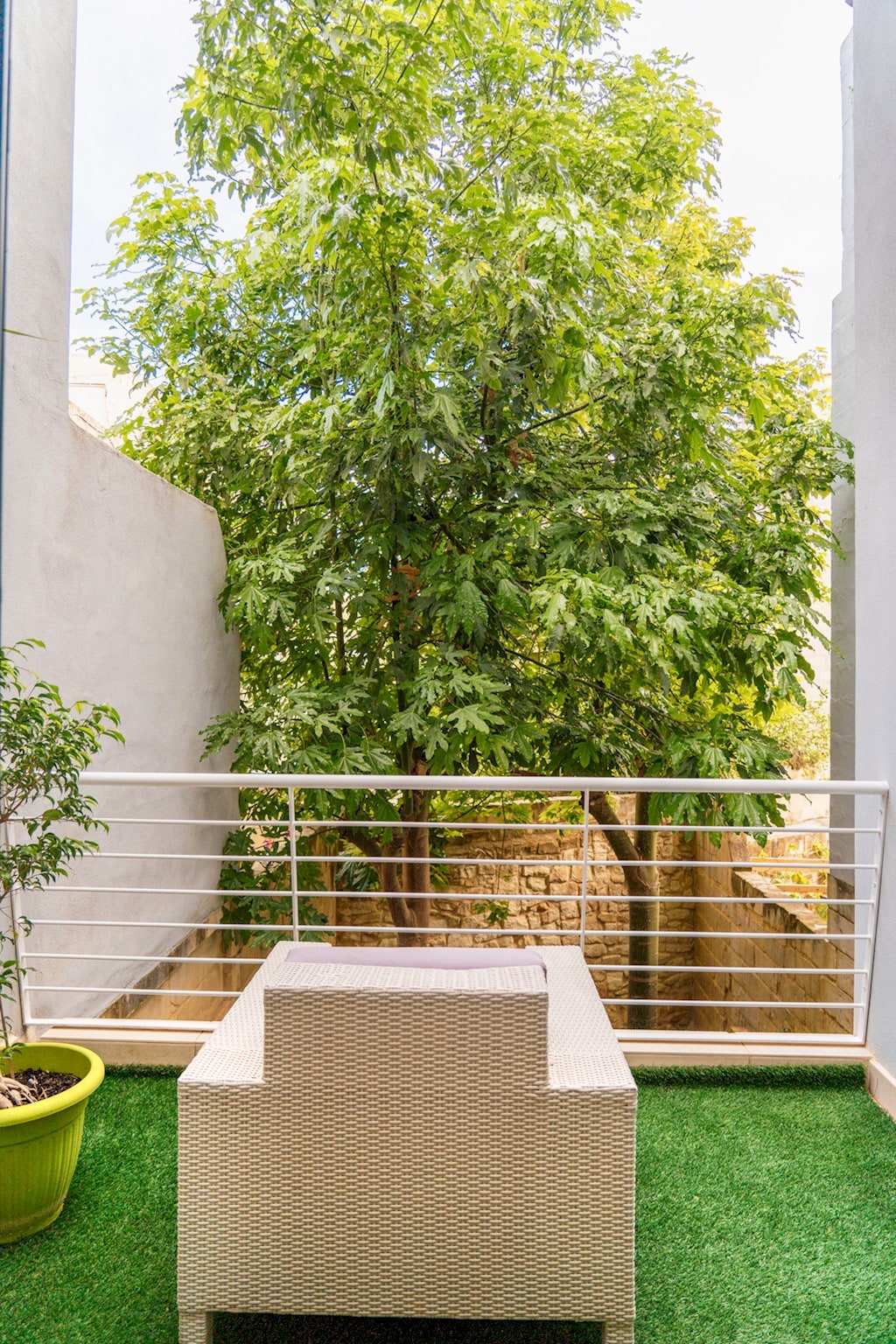 The second bedroom has two single beds a workstation, a beautifully crafted baby cot, and a completely open traditional Maltese Balcony (Gallarija). Complementing this second bedroom is an original vintage 1950’s mid-century wardrobe in American Walnut. Each bedroom offers ample closet space for your belongings. Upon climbing a contemporary steel/wood/glass staircase, one finds the third double bedroom with its own ensuite and private terrace.