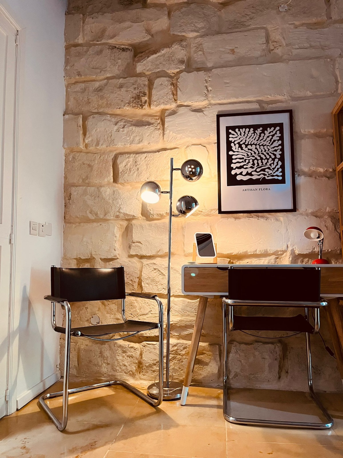 This holiday home is in a typical Maltese village, so if you’re visiting Malta for the nightlife or the entertainment scene, then really, this isn’t the property for you. If, on the other hand, you’re curious about our local lifestyle, find our history, culture, and traditions intriguing, and would like to spend a few days "living like a local," then you’re sure to fall in love with 130. The house is a mix of contemporary design and a selection of carefully curated vintage mid-century furniture pieces. In each room of the house, you will find at least one particular original vintage piece, be it an armchair, a wardrobe, a light fitting, or even a vintage Maltese typewriter! We believe that this house truly offers an alternative to the usual mainstream holiday accommodation.The ground floor boasts an open plan layout that includes a pretty cozy TV/lounge area upon entrance, a space perfect for relaxing after a day of exploring the islands. A second open-plan living room and dining area that comfortably accommodates all guests is next, together with a fully-equipped gourmet kitchen that has everything you need to cook up a storm. The large panel of windows provides ample natural light and grants access to a 30 sq meter outdoor space which is equipped with an outdoor dining area, lounge seating area, and a hammock positioned under two luscious towering trees.