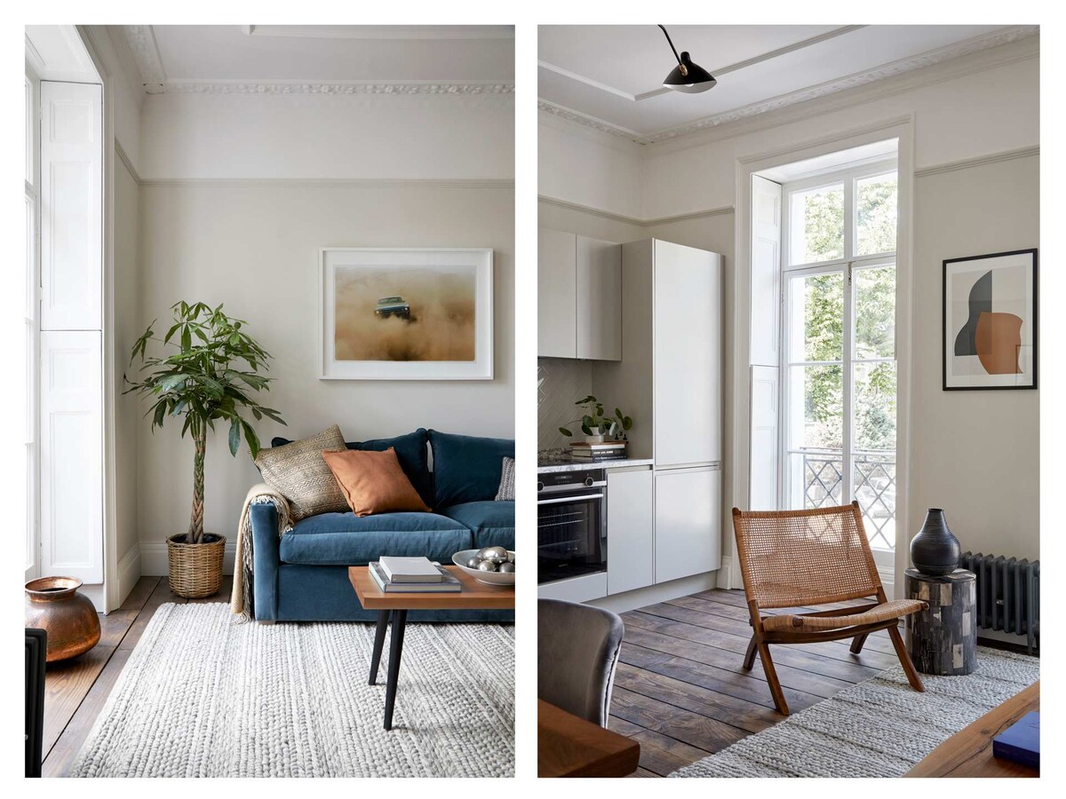 The cosy bedroom and en-suite are situated to the rear of the apartment providing a quieter space away from the front of the property, whilst the living area and kitchen are situated to the front of the building. The kitchen is well equipped, suitable for cooking substantial meals and stocked at the start of your stay with basic essentials such as sugar, tea, coffee & granola. If you do intend to use the sofa bed in the living room though please do bear in mind if you are a light sleeper that noise from the street is inevitable when in London. The bathroom is an en-suite with shower and towels and premium soaps/shampoos are provided. The apartment has a desk and working area and complementary WiFi is included throughout the building.We have 4 other similar apartments within the building, so if this unit is not available or if you may prefer a different apartment, let us know!