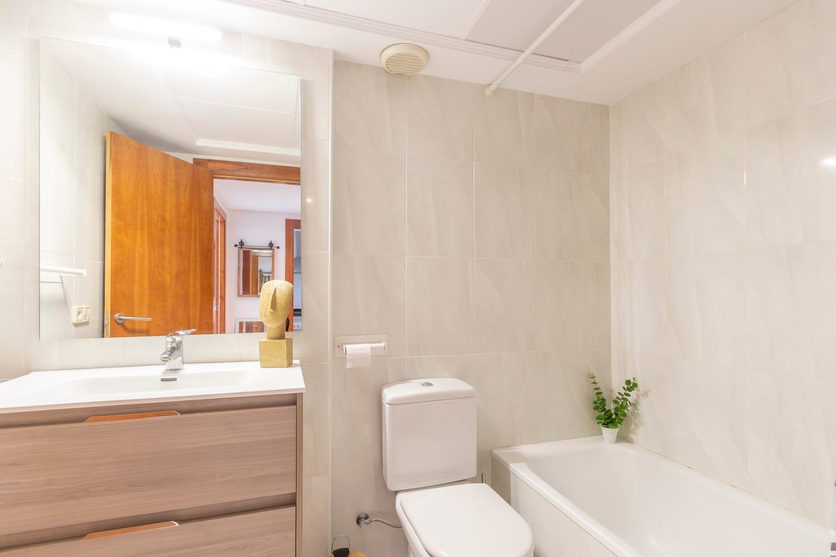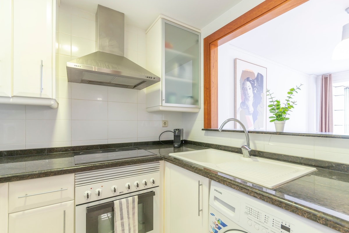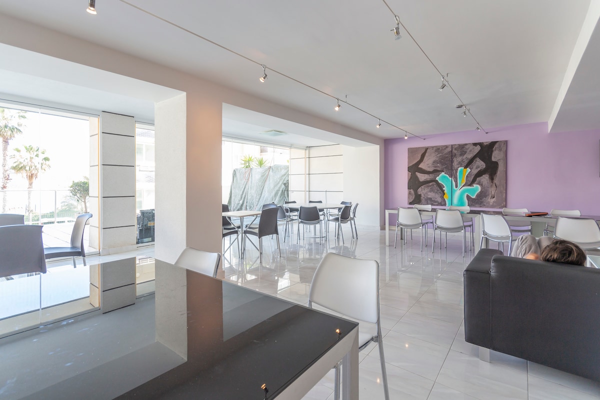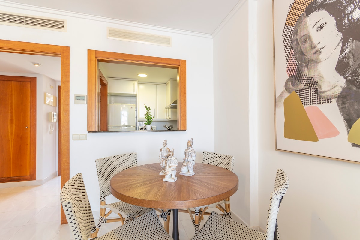 Do you fancy a cool bath just at dawn? Or maybe you are one of those who like a dip before eating or after a nap? In the Mesana apartment you have it very easy. It is located 50 m from La Fossa beach and has a beautiful community swimming pool with lawn. It doesn't matter if you're more of saltwater or freshwater! In the Mesana apartment you have two options to choose from!Recently decorated by professional interior designers, it has 1 double bedroom and 1 bathroom, but it is suitable for three people, since the living/dining room has a sofa-bed. Both the bedroom and the living room are equipped with air conditioning to guarantee maximum comfort.The accommodation is designed to make your vacation easier and has cable TV in the dining room, an American kitchen equipped with all appliances and a complete bathroom with sink, shower and bathtub combination, toilet and hair dryer.Although when you see the beautiful views of the apartment from the terrace, you will hardly want to stay inside! Just enough to sleep, nap and little else. The bay of Calpe, the beach, are in sight and invite you to enjoy it.The lawn garden, the swimming pools for adults and children, the playground, are at your disposal so that you can leave your apartment and enjoy them with your family. There you can swim in the pool, relax on the lawn, but also have a place to eat. And if you want to go further you have many options. And we are not just referring to the beautiful beach of La Fossa. Very close to the holiday apartment you have places to go out, to practice sports or to relax with a cold drink or try some of the gastronomic delights offered by Calpe's bars and restaurants.And best of all, you hardly have to drive! As almost everything you need is a stone's throw away, you can leave your car in the parking space as soon as you arrive and forget about it during your vacation.Costa Blanca and Costa CarpeDiem are waiting for you!Interior of the apartmentair conditioned living/dining room with television and sofabed