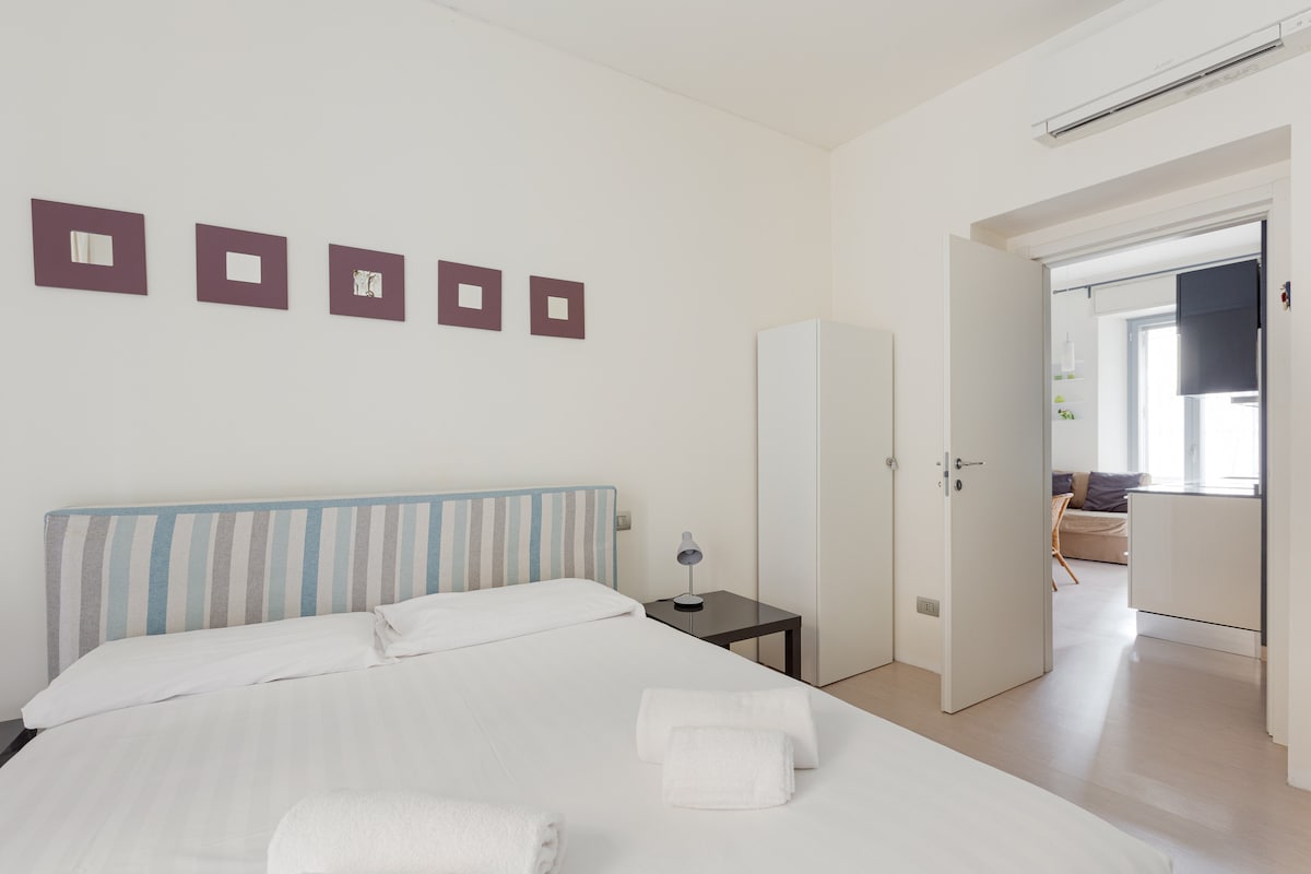 Comfortable and bright 48 sqm apartment, ideal for 2 people. Equipped with all modern comforts such as wifi and air conditioning, it ensures a relaxing and connected stay. Located just 650 meters from the Arco della Pace, it is in a lively and charming neighborhood, offering the perfect balance between tranquility and city excitement. The neighborhood is full of restaurants, cafes, and green areas, making it perfect for exploring local life and enjoying the authentic city atmosphere.
