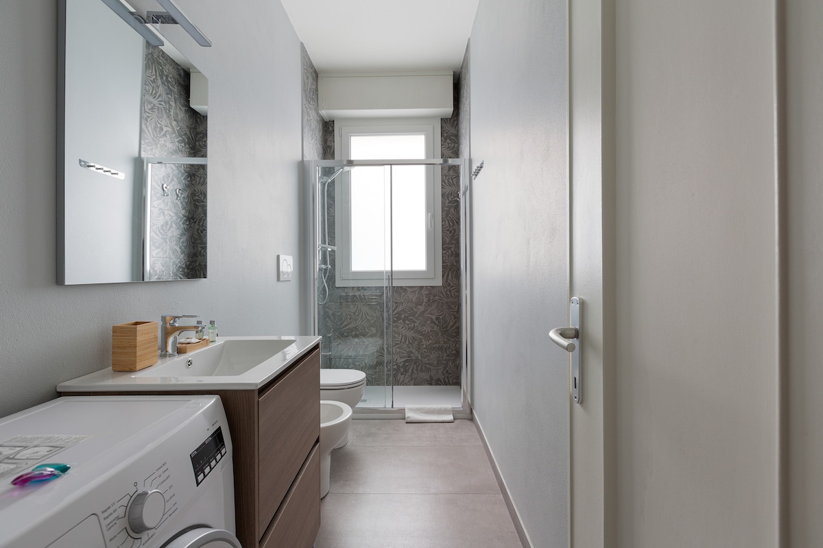 - BATHROOM with shower, washing machine, washbasin, bidet and WC;