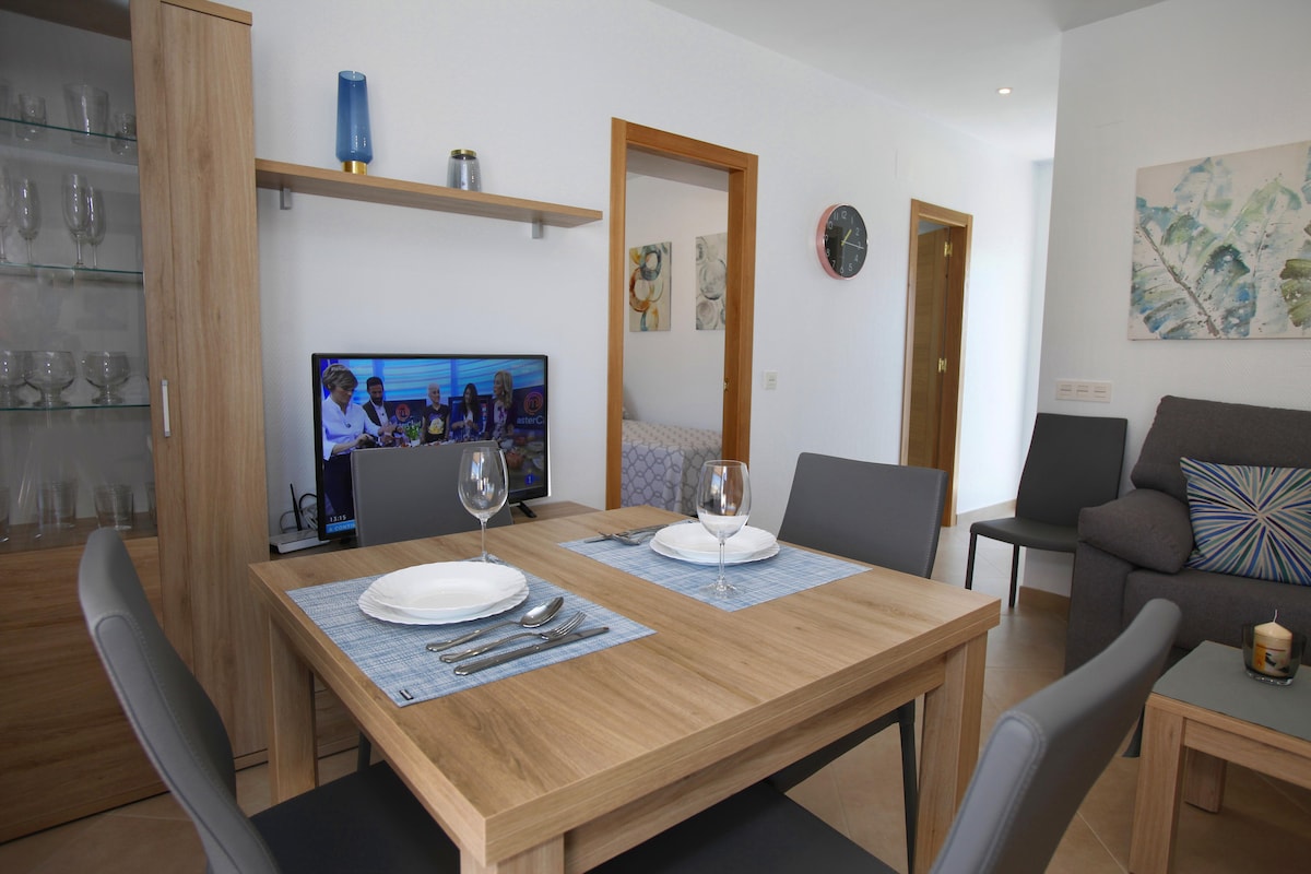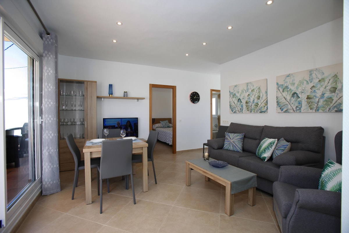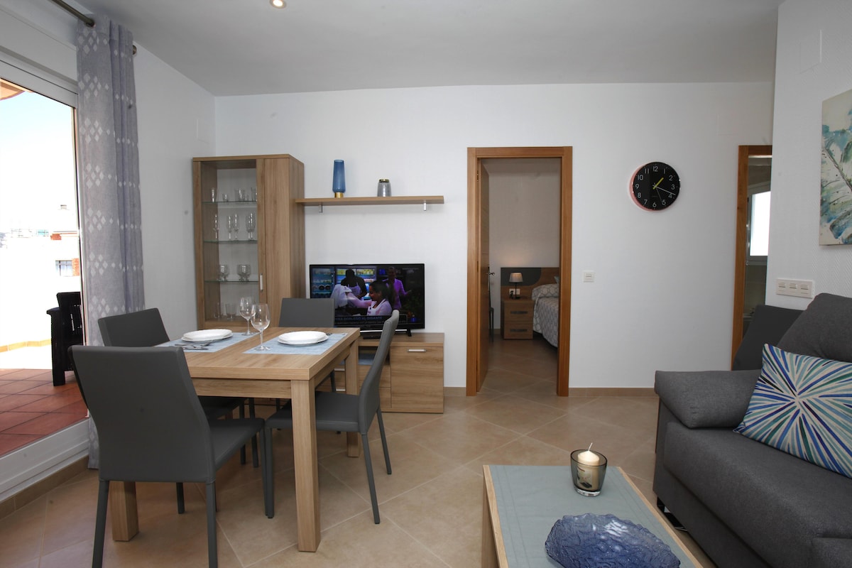 Whether you’re arriving in summer or winter, this fully refurbished (May 2018) 2-bedroom penthouse lets you enjoy a Spanish getaway beside the sea with local conveniences just minutes away.The property gets the best of the sun all day long - best enjoyed on your private 45 m2 rooftop terrace making it a fabulous spot for sipping drinks and grilling up evening meals in your barbecue.Indoors, the penthouse features two bedrooms: a stylish master bedroom with a double bed and a kid-friendl...