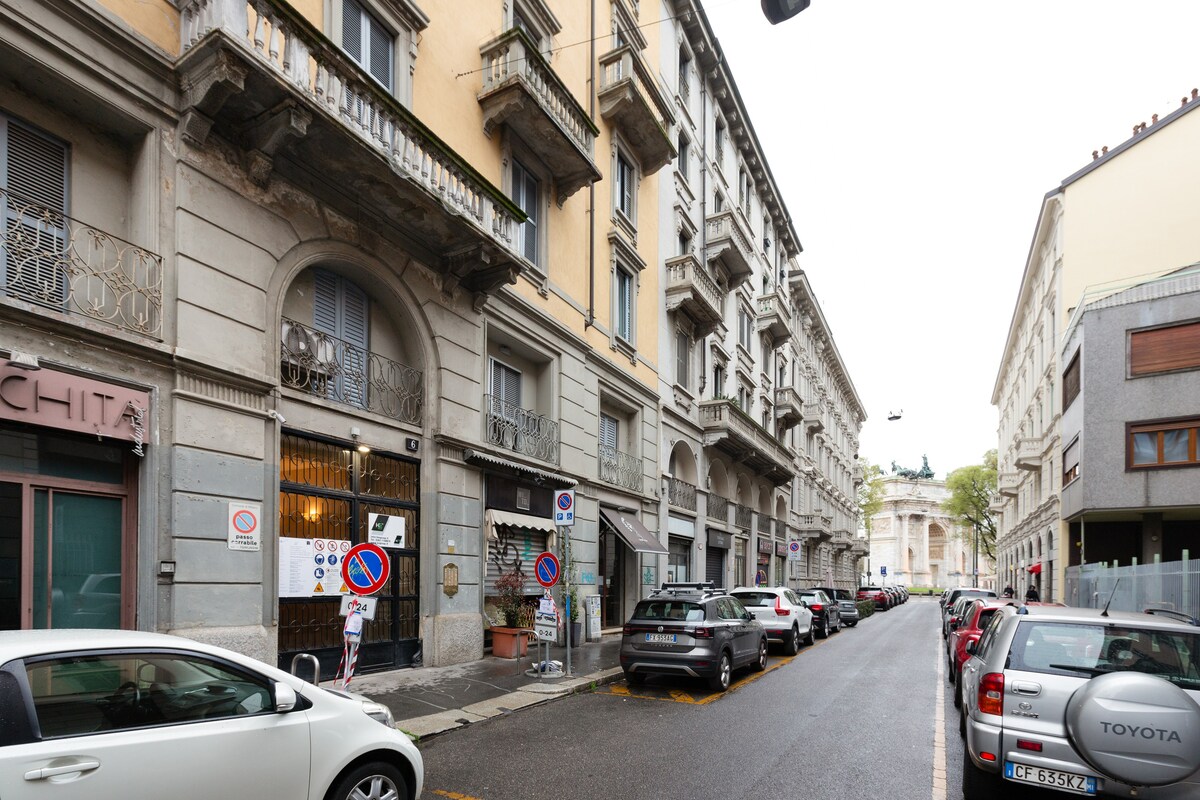 Modern studio apartment of approximately 50 sqm located on the ground floor of a building without a lift (NOT suitable for disabled people). The apartment is located in an enviable position, a short distance from the Arco della Pace, Parco Sempione and Piazza Castello, through a pleasant walk you will also reach the Duomo, San Babila as well as the Brera and Isola districts.