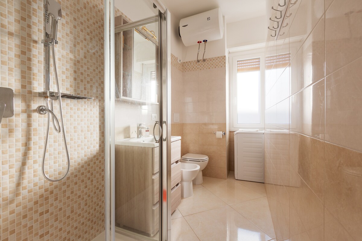 - BATHROOM with shower, sink, bidet, and WC;