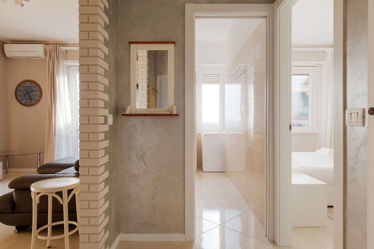 FURTHER SERVICES AVAILABLE TO GUESTS: underfloor heating, air conditioning (one split in the living room and one in the bedroom), clothes rack, hairdryer, iron, and ironing board.