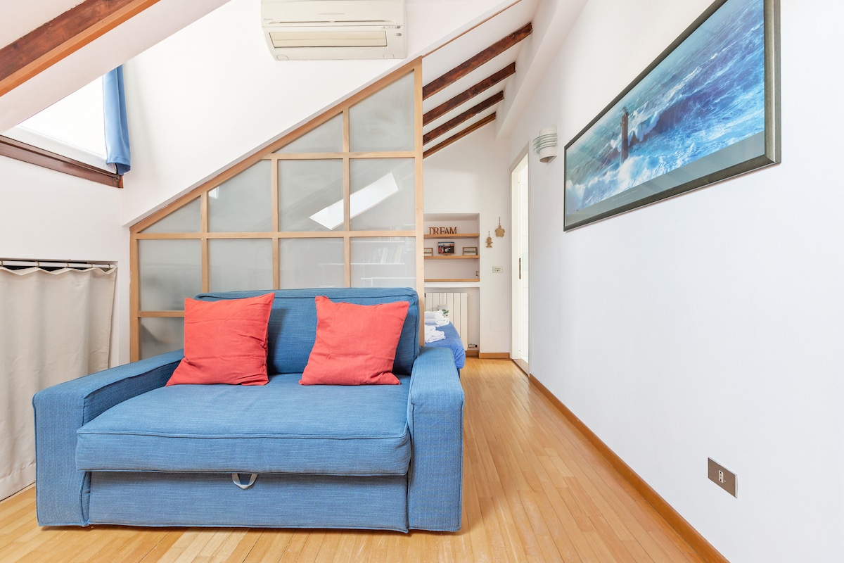 Very nice apartment in a good location in Milan. Top apartment with slanted ceilings tall people beware.