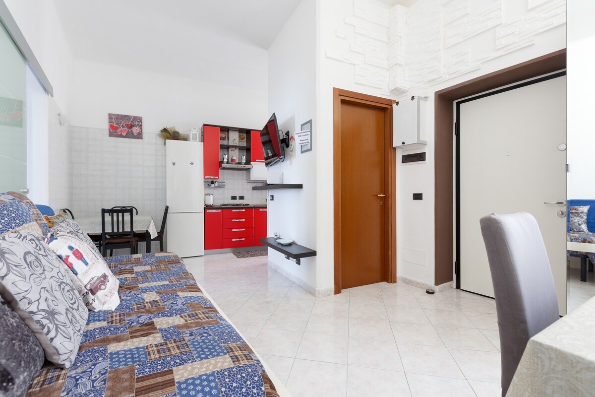 The accommodation is located on the first floor of a building NOT equipped with a lift: you need to climb the stairs to access it.The internal space is organized as follows:
