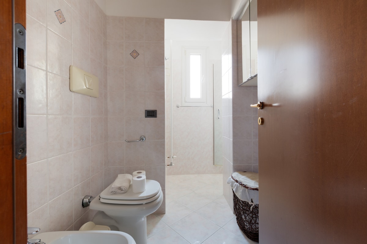 - BATHROOM (one step at the entrance) with wc, bidet and shower box