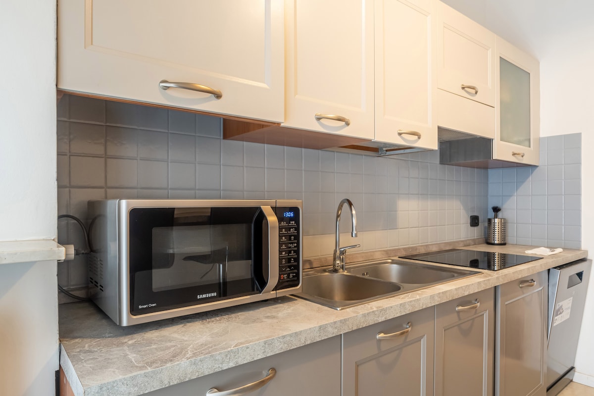 -KITCHEN equipped with induction hob, microwave, dishwasher, kettle. Access to the BALCONY